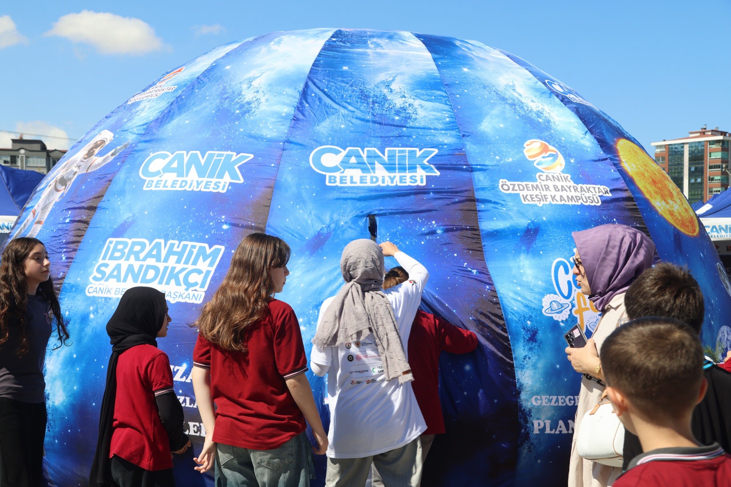 Planetaryum etkinliklerinin yanı sıra okullara teknoloji atölyeleri de kurduklarını söyleyen ve sürdürülebilir eğitim uygulamalarının önemine değinen Canik Belediye Başkanı İbrahim Sandıkçı, "Eğitimde farkındalık oluşturan çalışmalarımızla öğrencilerimizin yeni bilgiler öğrenmelerini ve yeteneklerini keşfetmelerini sağlıyoruz. Okullarımızda kurduğumuz planetaryum, doğa ve teknoloji atölyeleriyle öğrencilerimizi uygulamalı eğitimler, eğlenirken öğrenmelerine imkan sunan aktivitelerle bir araya getiriyoruz. Bu eğitim programlarımızın yanı sıra öğrencilerimize Milli Teknoloji Hamlesi'yle geliştirilen ve kullanımda olan yerli ve milli eserlerimiz hakkında da bilgiler veriyoruz. Canik'te geleceğin bilim insanlarını yetiştiriyor, bilim ve teknoloji atağımızı sürdürüyoruz" diye konuştu.