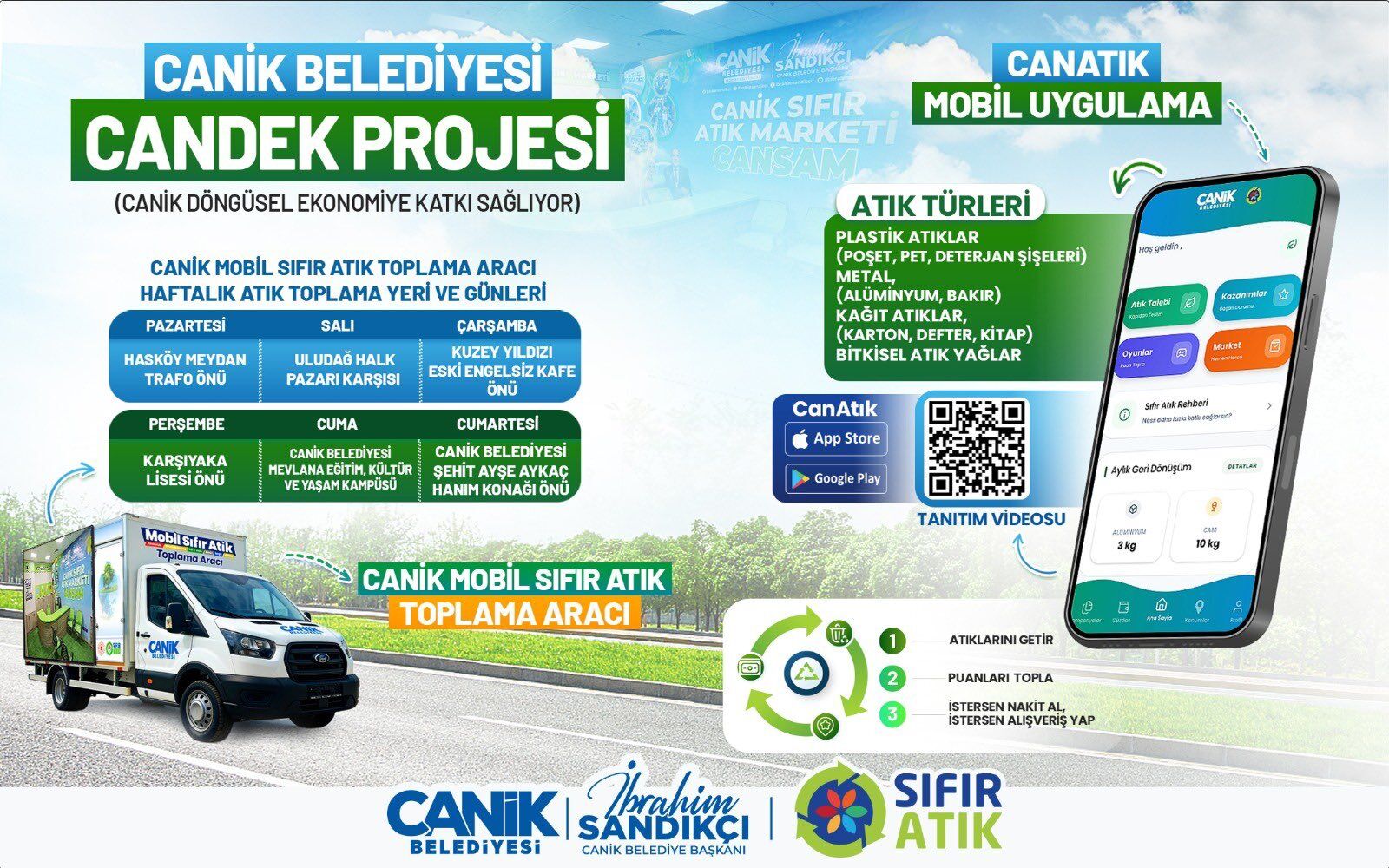 Canik Belediyesi, çevre dostu projeleri kapsamında “Canik Mobil Sıfır Atık Aracı” uygulamasını vatandaşların hizmetine sunmaya devam ediyor. Uygulama ile geri dönüştürülebilir atıklar toplanırken, vatandaşlara nakit iade, Canik Sıfır Atık Market puanı ve CanAtık paketi gibi çeşitli kazanımlar sağlanıyor.