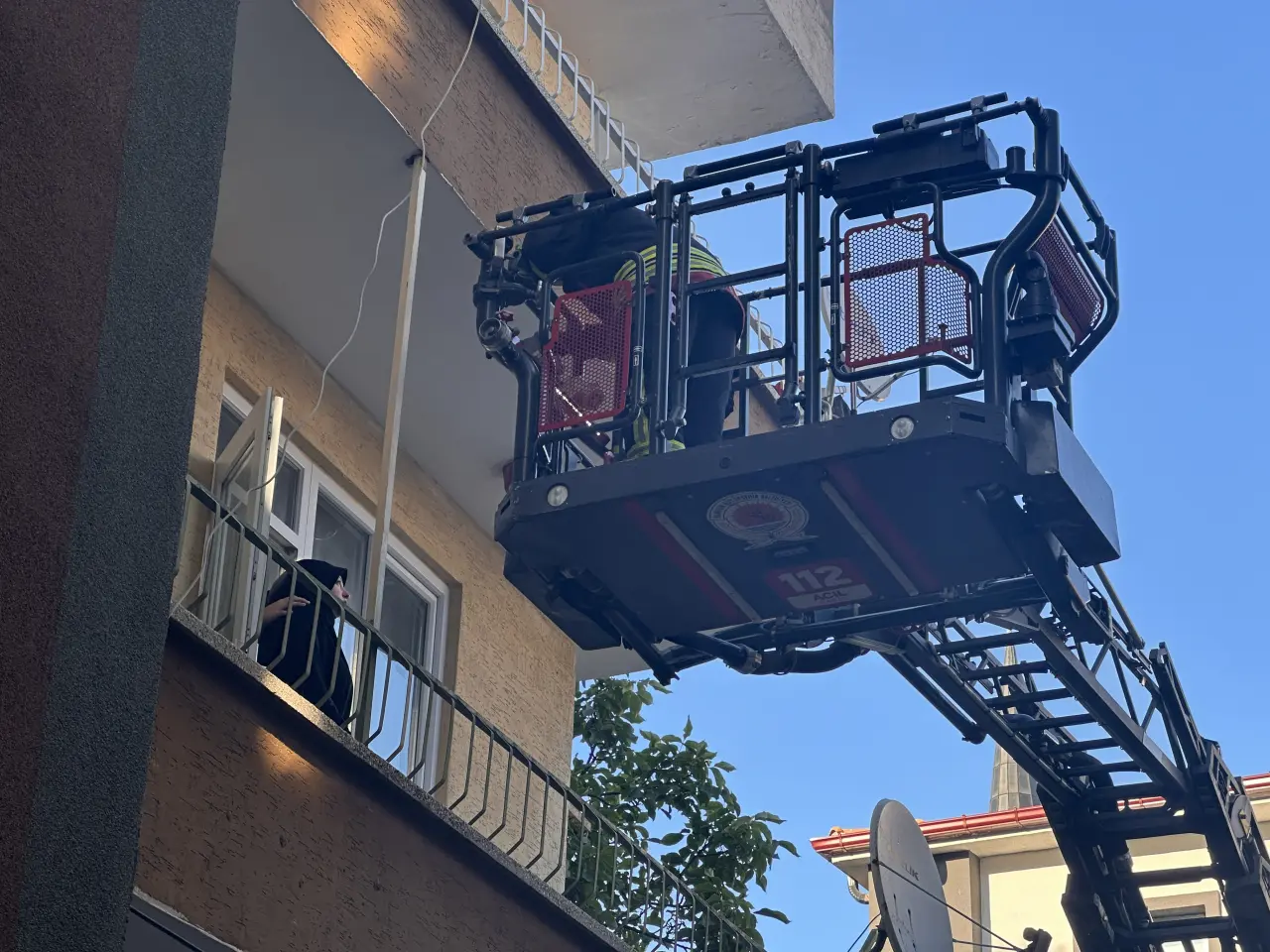Dumandan etkilenen ve evlerinin balkonuna çıkan biri hamile 4 kişi itfaiye ekiplerince tahliye edildi.