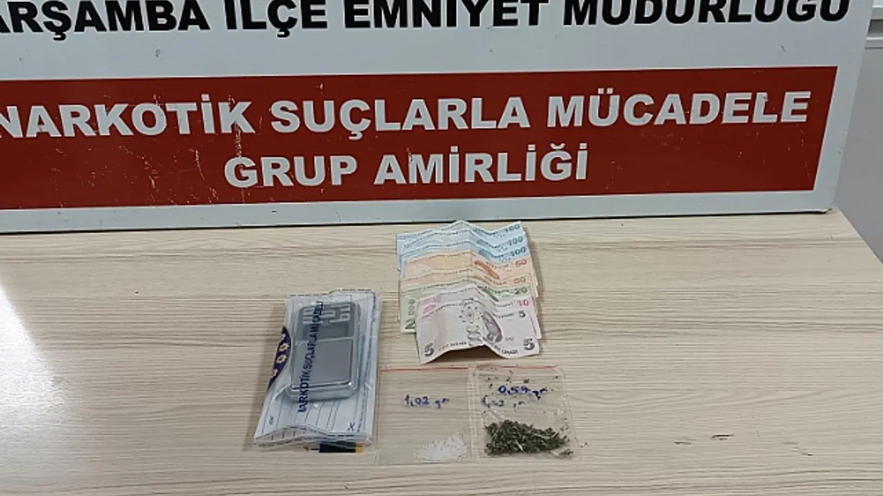 Edinilen bilgiye göre, Çarşamba Cumhuriyet Başsavcılığı koordinesinde yürütülen soruşturma çerçvesinde Çarşamba ilçesi Yeşilırmak Mahallesi'nde uyuşturucu satışı yaptığı değerlendirilen D.K. isimli şüphelinin evine Çarşamba İlçe Emniyet Müdürlüğü Narkotik Şube ekiplerince operasyon düzenlendi. Operasyonda yaklaşık 2 gram metamfetamin, yaklaşık 1 gram esrar, 1 adet hassas terazi, bir miktar para ve şüpheliye ait cep telefonu ele geçirildi.