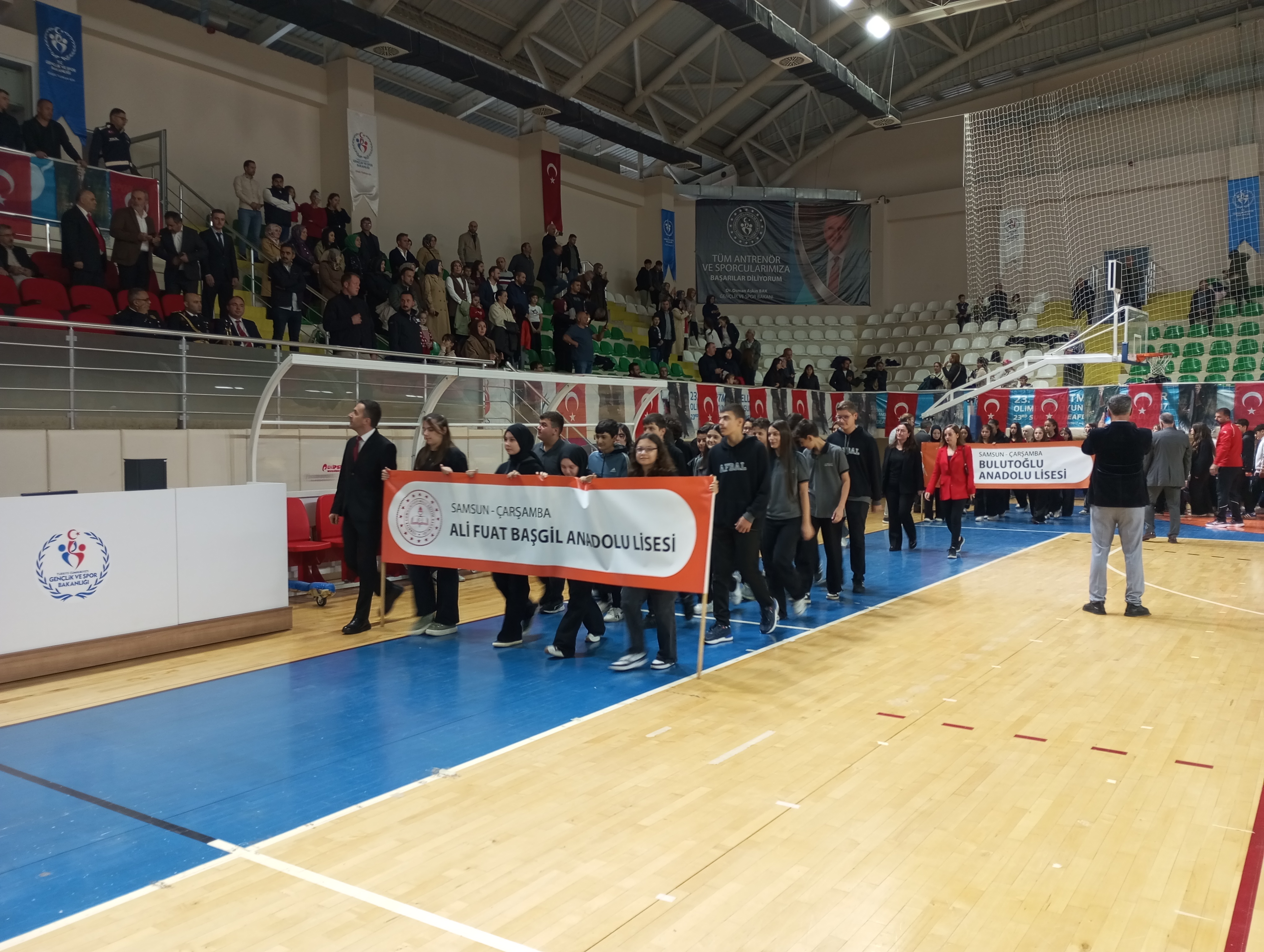 Çarşamba Spor Salonu’nda gerçekleşen programa Kaymakam Mehmet Kamil Sağlam, Belediye Başkanı Hüseyin Dündar, Cumhuriyet Başsavcısı Çağrı Gir, Garnizon Komutanı Üsteğmen Zafer Irmak, İlçe Emniyet Müdürü Ferdi Kuyu, İlçe Jandarma Komutanı Üsteğmen Coşkun Kurt, İlçe Milli Eğitim Müdürü Murat Bedir ve çok sayıda vatandaş katıldı.