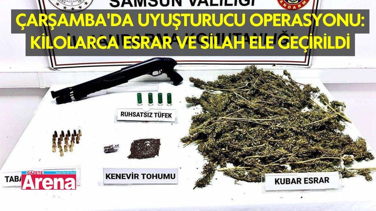 Samsun’un Çarşamba ilçesinde jandarma ekipleri tarafından düzenlenen yasaklı madde operasyonunda 2 kilo 565 gram kubar esrar, 30 gram kenevir tohumu, 1 adet ruhsatsız av tüfeği ve 24 adet 9 mm tabanca fişeği ele geçirildi.