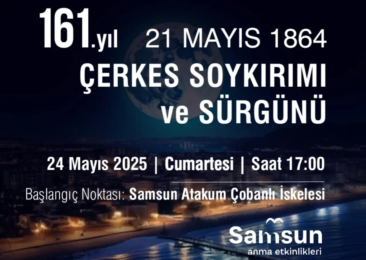 21 Mayıs 1864 Çerkes Soykırımı ve Sürgünü’nün 161. yılı, Kafkas Dernekleri Federasyonu (KAFFED) ve Samsun Çerkes Derneği’nin organizasyonuyla Samsun’da düzenlenecek kapsamlı bir anma programıyla anılacak. Türkiye’nin dört bir yanındaki Çerkes derneklerinin katılım sağlayacağı etkinlikler, 24 Mayıs Cumartesi günü gün boyu sürecek.
