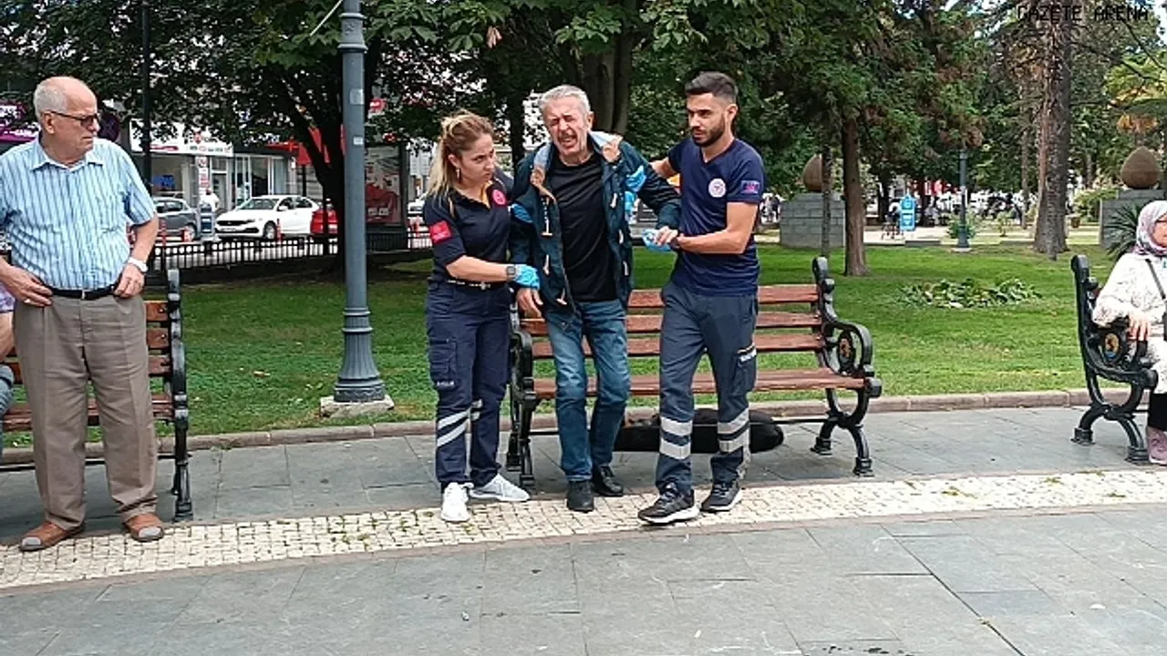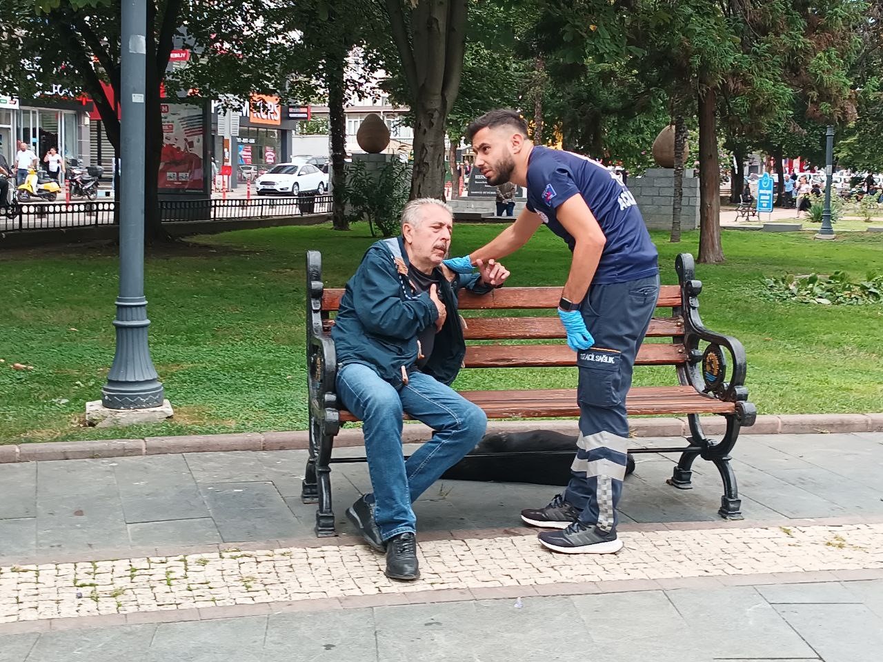 Ambulanstan inen sağlıkçı yaşlı adamın omzuna dokunarak, durumunu sordu. Daha sonra kalp krizi geçirdiği şüphelenilen yaşlı adamın koluna giren sağlıkçı, ambulansa yöneldi. Sağlıkçılar tarafından ambulansta ilk müdahalesi yapılan yaşlı adam, Gazi Devlet Hastanesi'ne kaldırıldı.