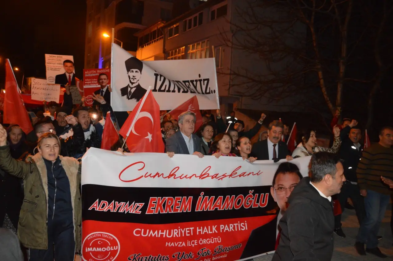 İstanbul Büyükşehir Belediye Başkanı Ekrem İmamoğlu'nun gözaltına alınmasının ardından Türkiye genelinde protesto eylemleri artarak devam ediyor. Bu kapsamda, Havza'da düzenlenen yürüyüş, demokrasiye ve hukukun üstünlüğüne sahip çıkmak amacıyla bir araya gelen vatandaşların güçlü bir duruş sergilemesine sahne oldu.