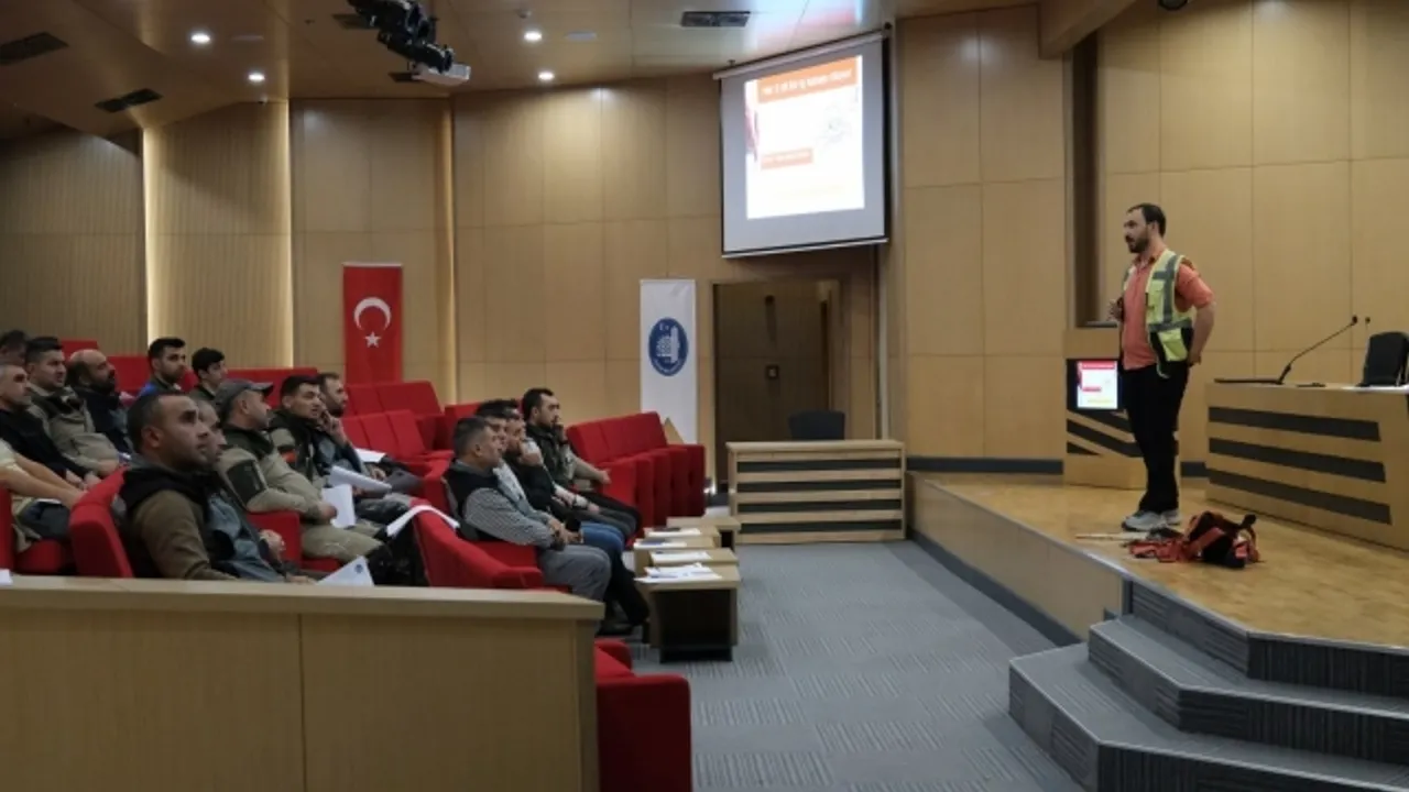 Çorum Belediyesi personelin iş sağlığı ve güvenliği ile yüksekte çalışma konularında bilgilendirilmesi amacıyla hizmet içi eğitim çalışmalarını sürdürüyor. Çorum Belediyesi toplantı salonunda gerçekleştirilen eğitime Destek Hizmetleri Müdürlüğü bünyesinde görev yapan personeller katıldı. İş yerinde bulunan tesisat, teçhizat ve makinelerin işletme metotlarının gerekli iş emniyetini temin etmek, işçilerin sağlık ve güvenlik içinde çalışmalarını sağlamak, insan gücünün çalışmada devamlılığını en yüksek seviyede tutmak, iş görememezlikten doğacak kayıpları önlemek amacıyla İş Güvenliği Uzmanı Yasin Emre Temur tarafından personellere yüksekte çalışma, iş sağlığı ve güvenliği konusunda dikkat edilmesi gerekenler anlatıldı. Ağırlık taşınması sırasında beden sağlığının korunması konusunda da bilgiler paylaşıldı. Öte yandan personellerin çalışma esnasında almaları gereken tedbirler uygulamalı olarak gösterildi.