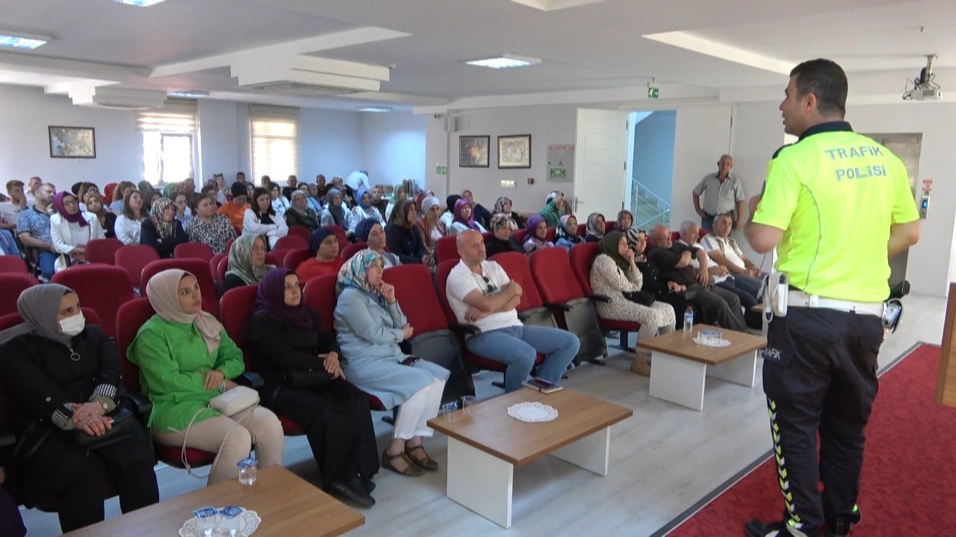 Samsun Emniyet Müdürlüğü Trafik Denetleme Şube Müdürlüğü Eğitim Büro Görevlisi Polis Ramazan Kırdar, “Kendi arabanıza bindiğinizde de rehber personel olun. Birçok kuralı vatandaşlarımız biliyorlar. Örneğin kırmızı ışıkta durulur. Bunu bilmeyen burada bir kişi bile yoktur. Ana sınıfına giden öğrenciler de bunu biliyor. Ama şu anda ben uygulama yapan bir ekibi arasam ve desem ki bana kırmızı ışıkta geçen araç sayısını söyleyin. Belki bana diyecekler ki ‘şu ana kadar 50 kişi kırmızı ışıkta geçti.’ Hani bunu anasınıfındaki çocuk bile biliyordu. Bizim sürücülerimizde şu durum var: Kuralları biliyoruz ama bu kuralların polisle karşı karşıya kaldığımızda ceza yemek ya da yememek için var olduğunu zannediyoruz. Bunun ceza ile bir ilgisi yok. Kişi kemer takmadığı için insanlar zarar görüyor. İnsanlar sadece polisi görebileceği veya ceza yiyebileceği yerlerde emniyet kemeri takma gereği hissediyorlar. Emniyet kemerinin çok güzel bir sloganı var; ‘Hayat Bir Hareketine Bakar.’ Aldığınız bu önlem sayesinde belki sakat kalmaktan, belki de hayatınızı kaybetmekten kurtulabilirsiniz. Çocuklara mutlaka kemerlerini taktırıyoruz. Taşıt içi düzeni sağlamanız gerekiyor. 2023 yılında 15 okul servisi kazası meydana gelmiş ve 43 kişi yaralanmış” dedi.