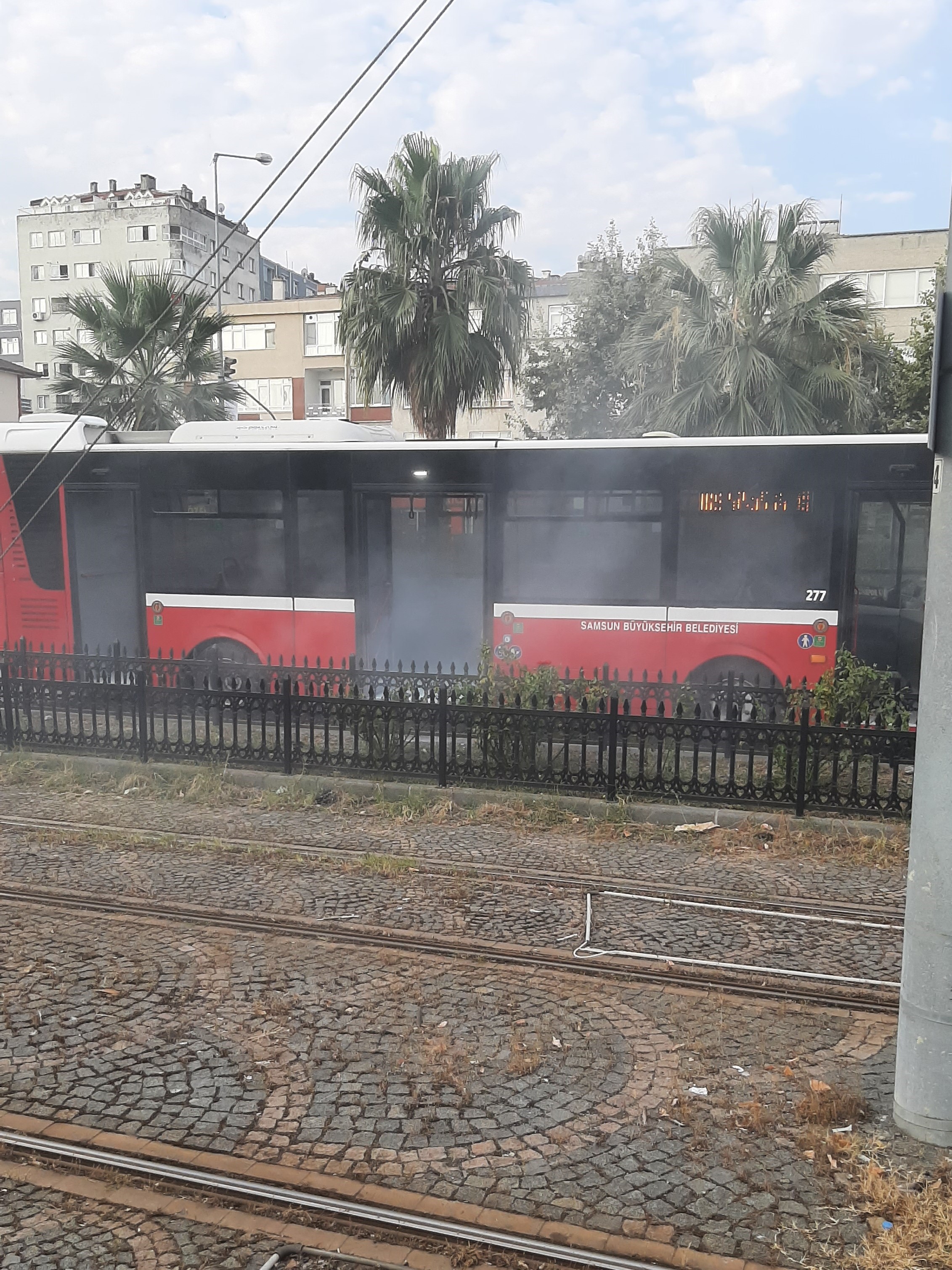 Edinilen bilgiye göre, saat 07.50'de İlkadım ilçesi Atatürk Bulvarı'nda seyir halindeki R28 otobüsünde patlama sesi duyuldu. Otobüsün içi yangın tüpünün patlamasıyla açığa çıkan toz şeklindeki yangın söndürme kimyasalları ile kaplandı.