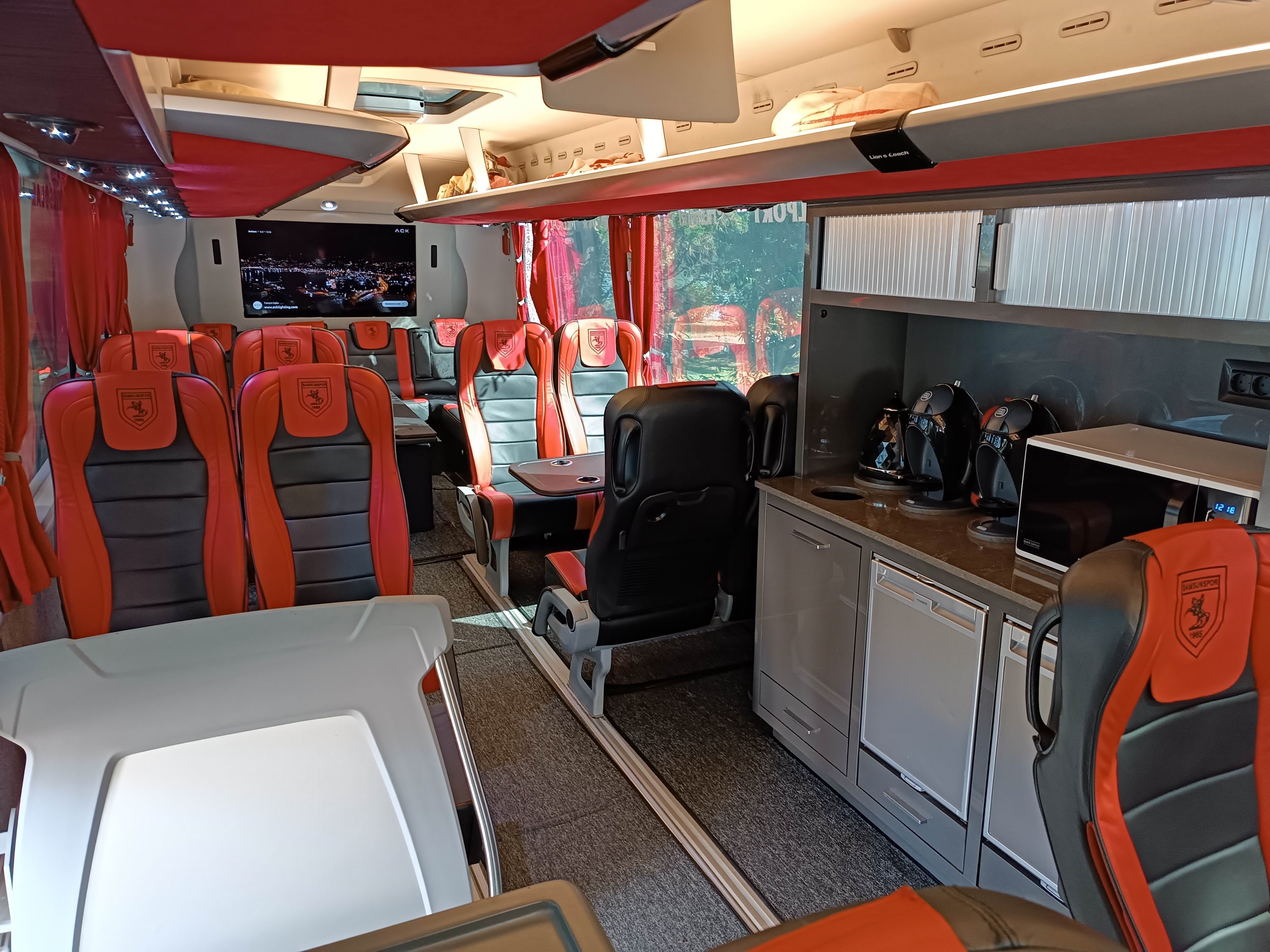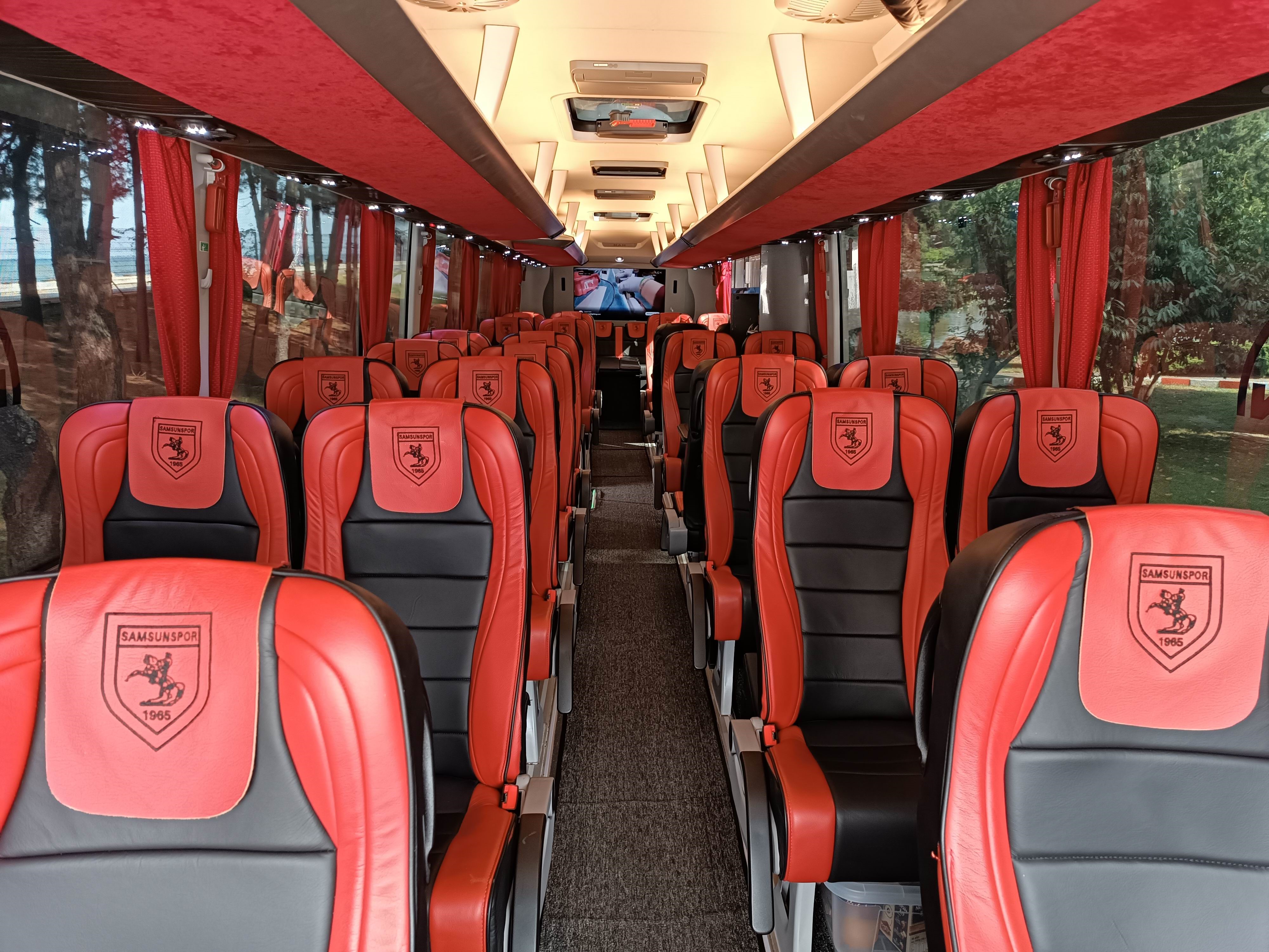 11 yıl aranın ardından Süper Lig’e geri dönen Samsunspor, futbolcuların rahat yolculuk etmesi için her şeyi düşünüyor. Y. Samsunspor A.Ş. Yönetim Kurulu Başkanı Yüksel Yıldırım tarafından 2 sezon önce takıma tahsis edilen otobüs; konforu, iç dizaynı, teknolojik donanımı, koltuk sayısı, alan genişliği, yatakları, mutfağı, tuvaleti ve daha birçok özelliği Süper Lig’de kullanılan birçok takım otobüsünden ayrılıyor.