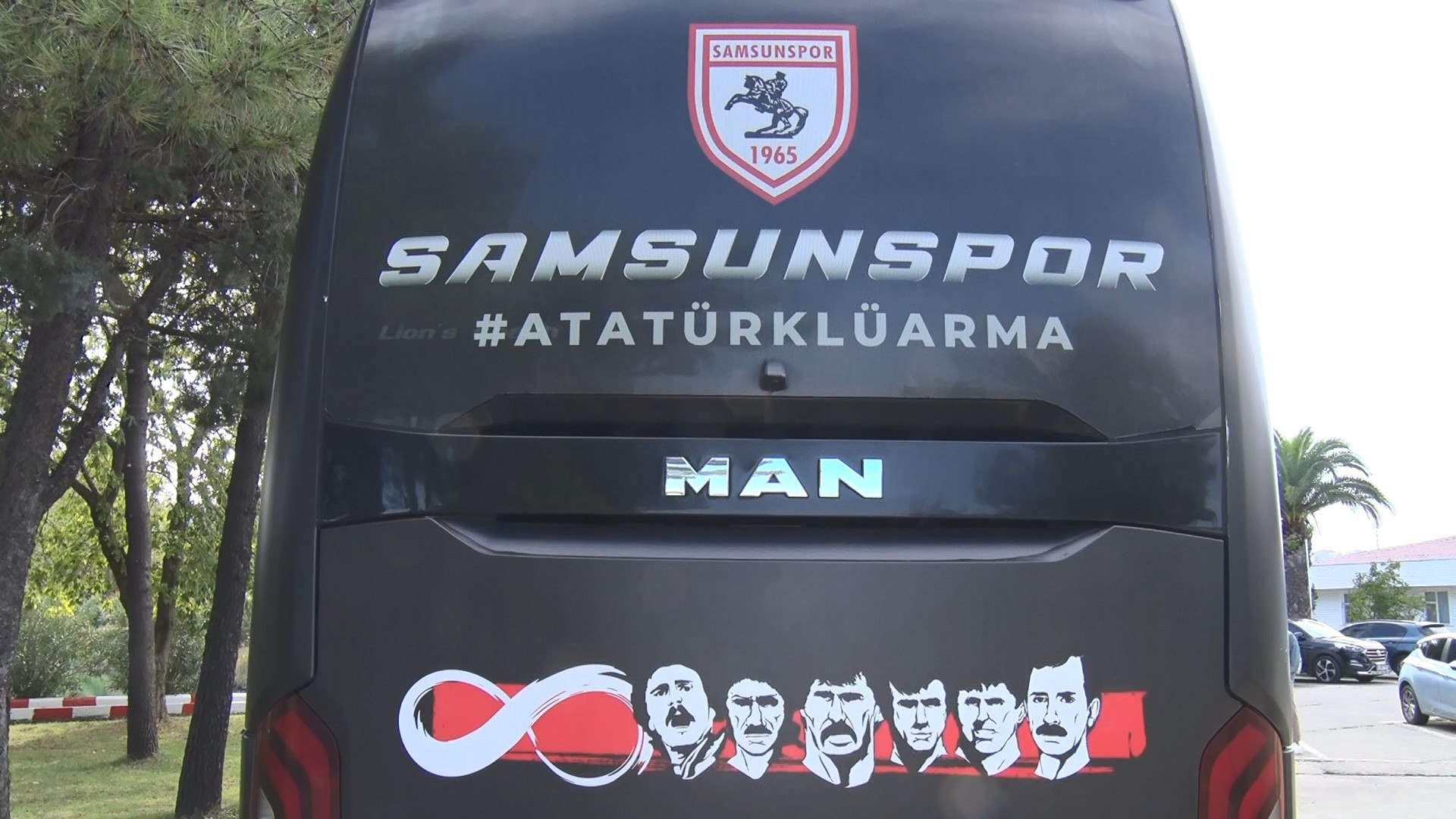 Otobüsün dış görünüşü de görenler tarafından büyük beğeni topluyor. Otobüsün önünde ve plakasında ‘Samsunspor’ yazarken, aracın sol ve sağ tarafında kulübün renklerine ithafen siyah zemine kırmızı-beyaz puntolarla Atatürk armalı Samsunspor logosu, Samsun’un simgesi Atatürk heykeli figürü üzerine boydan boya Samsunspor yazıyor. Otobüsün arka kısmında ise kırmızı-beyaz olan takım renklerine siyahın eklendiği 20 Ocak 1989’daki takım otobüsü kazasında hayatını kaybeden Samsunspor Teknik Direktörü Nuri Asan, futbolcular Muzaffer Badalıoğlu, Mete Adanır, Zoran Tomiç ve otobüs şoförü Asım Özkan’ın fotoğrafları yer alıyor.