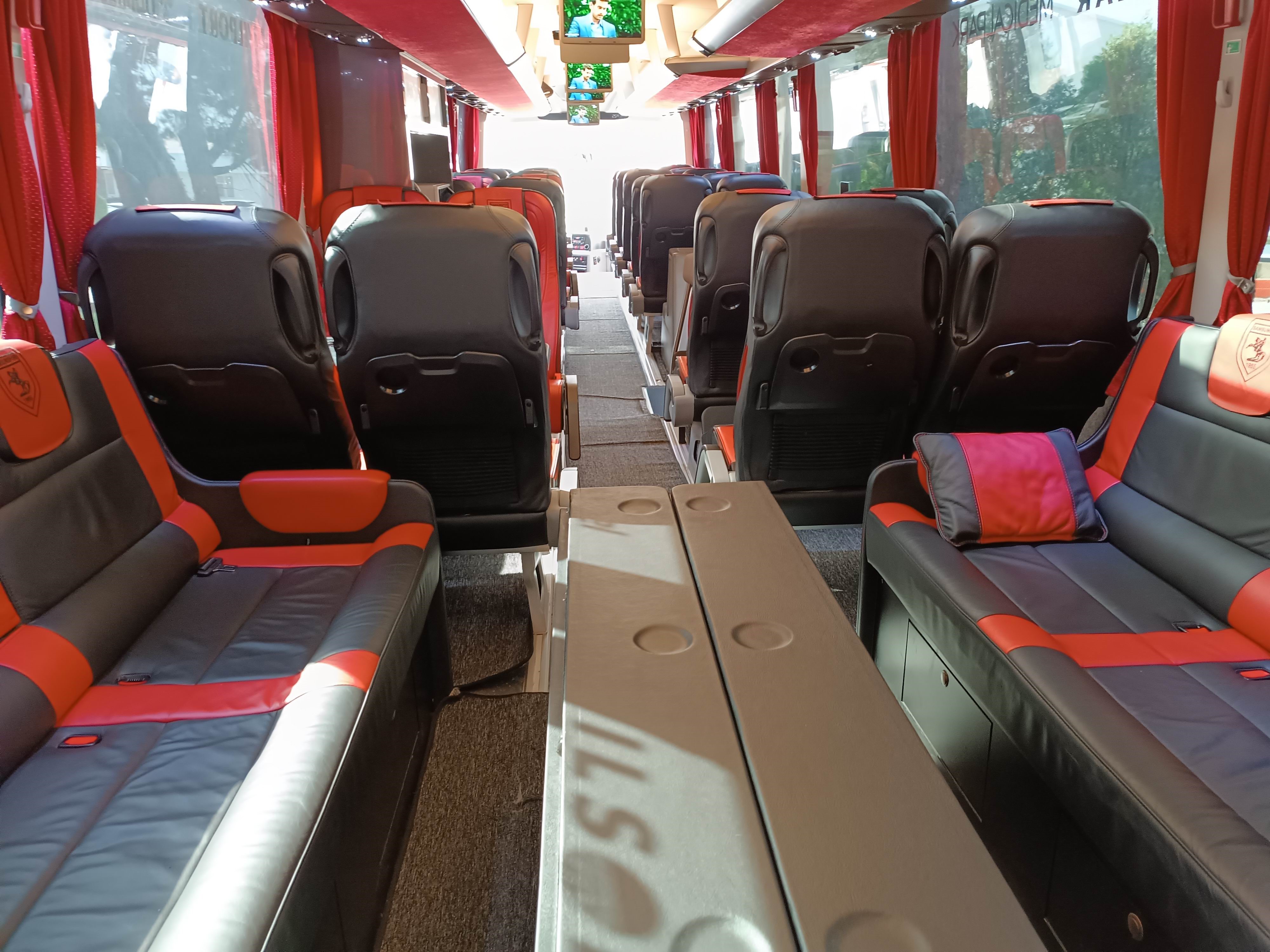 İspanya'nın Barcelona ve Almanya'nın Bayern Münih gibi dünyanın en önde gelen takımlarının da kullandığı otobüs; iç dizaynı olarak da bu takımların kullandığı donanıma sahip. Aynı koltuk sayısı ve yerleşiminin baz alındığı otobüste, seyahat bir business class uçak yolculuğu konforunda gerçekleştirilebiliyor. Ayrıca otobüsün şoförlüğünü de 26 yıldır takım otobüsünü kullanan Recep Terzi üstleniyor. Terzi ayrıca Türkiye profesyonel liglerinin en uzun süre takım otobüsü şoförlüğü yapan personellerin de başında geliyor.
