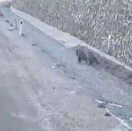 Ayıları gören sürücüler, o anları cep telefonlarıyla görüntüledi. Bir süre koşan yavru ayılar daha sonra gözden kayboldu.