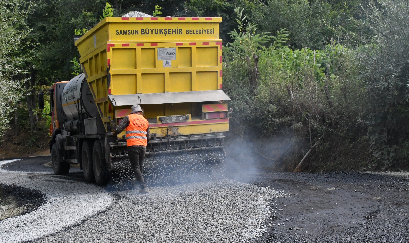Samsun Büyükşehir Belediyesi, gerek kent merkezi gerek kırsal mahallelerdeki alt ve üstyapı çalışmalarına aralıksız devam ediyor. Özellikle kırsal mahallelerdeki mahallelerin ulaşımla ilgili sorunları tek tek çözülüyor. Büyükşehir Belediyesi Yol Yapım Bakım ve Onarım Dairesi Başkanlığı ekiplerince Alaçam ilçesine 25 kilometre uzaklıktaki Tepebölmesi-Aşağıısırganlı-Terskırık Grup Yolu’da geçen yıl yapılan genişletme çalışmalarının ardından 1’inci kat sathi kaplama çalışması da tamamlandı. Böylece mahalle sakinlerinin uzun yıllardır yaşadıkları ulaşım problemi ortadan kaldırıldı.