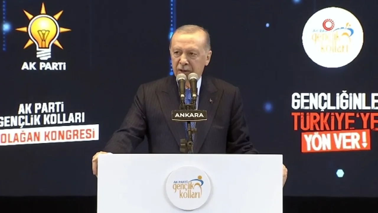 Hayatın her alanında gençlere güvendiklerini ve destek olduklarını söyleyen Erdoğan, “Gençlere vitrin malzemesi olarak bakanlardan gelen tüm itirazlara rağmen seçilme yaşını önce 30’dan 25’e, devamında ise 18’e indirerek siyasetin gençleşmesini sağladık. Birileri ‘gençler yapamaz, gençler halledemez’ derken biz tam aksine ‘bu işi ancak gençler kotarır, gençler yapar’ diyerek politikalarımızın merkezine bu ülkenin evlatlarını yerleştirdik. Üstat Necip Fazıl'ın ‘bir iman merkezi etrafında toplananlar’ ifadesiyle tarif ettiği milletimizin yarınlarını yine siz gençlerimizle birlikte şekillendiriyoruz. Bir okul olarak gördüğümüz gençlik kollarımızda bu ülkeye ve bu millete sevdalı, istiklal ve istikbaline aşkla bağlı, bilgili, kültürlü, ahlaklı, erdemli ve donanımlı bir gençlik yetişiyor. ‘Kim var?’ Diye seslenildiğinde sağına soluna bakınmadan, fert fert ‘ben’ varım cevabını veren, ‘benim olmadığım yerde kimse yoktur’ diyen dava ahlakına sahip bir gençlik maşallah gümbür gümbür geliyor” ifadelerine yer verdi.