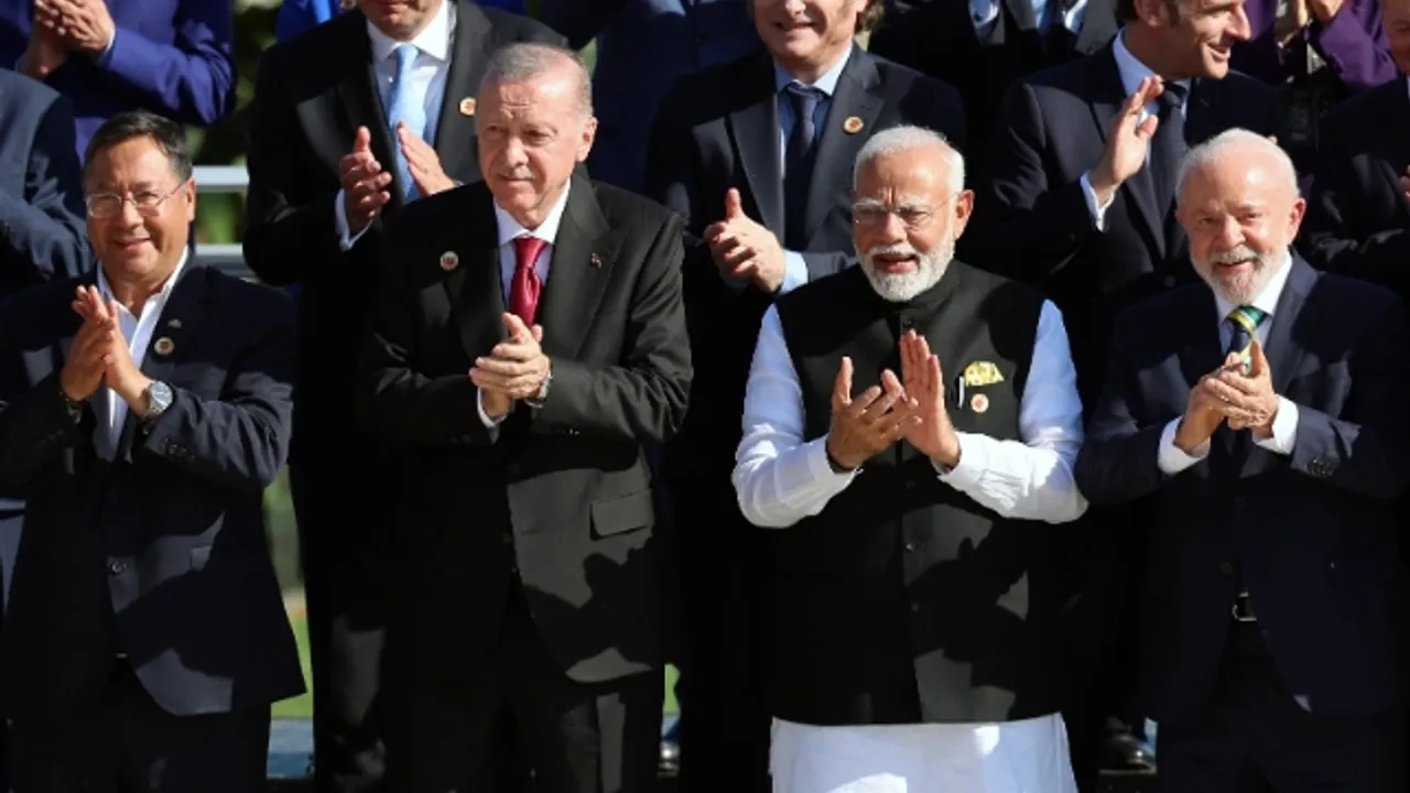 Cumhurbaşkanı Recep Tayyip Erdoğan, Brezilya'nın Rio de Janeiro kentinde düzenlenen G20 Liderler Zirvesi’nde temaslarına devam ediyor. Cumhurbaşkanı Erdoğan, zirve kapsamında liderlerle aile fotoğrafı çekimine katıldı. Cumhurbaşkanı Erdoğan, aile fotoğrafı çekilirken, Hindistan Başbakanı Narendra Modi ve Vietnam Başbakanı Pham Minh Chinh ile yan yana durdu.