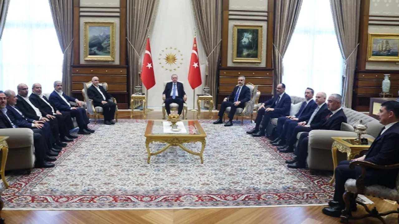 Cumhurbaşkanı Erdoğan, Hamas Şura Meclisi Başkanı Muhammed Derviş ve beraberindeki heyeti Cumhurbaşkanlığı Külliyesi’nde kabul etti. Görüşmede Dışişleri Bakanı Hakan Fidan, MİT Başkanı İbrahim Kalın, Cumhurbaşkanlığı İletişim Başkanı Fahrettin Altun ve Cumhurbaşkanı Dış Politika ve Güvenlik Başdanışmanı Çağatay Kılıç da yer aldı.