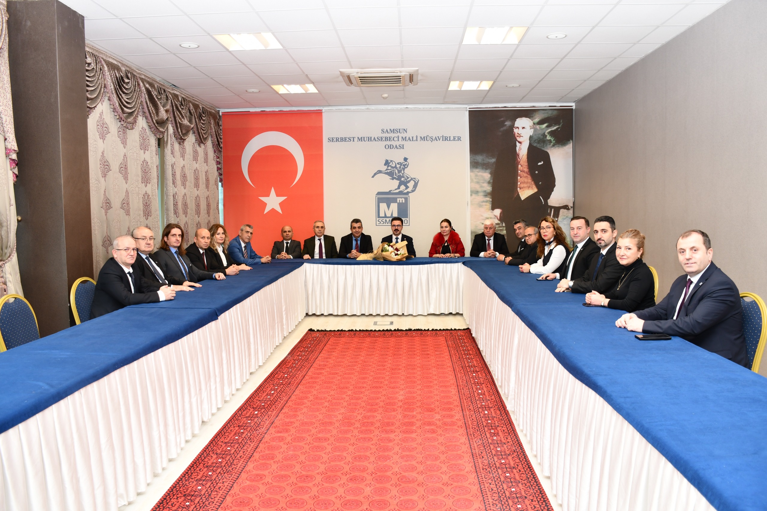 Samsun Mali Müşavirler Odası Başkanı Osman ARSLAN, nazik ziyaretleri dolayısıyla heyete teşekkür ederek, Mali Müşavir camiası olarak Mali İdare ile koordinasyon ve iş birliği içerisinde çalışmaya devam edeceklerini aktardı.