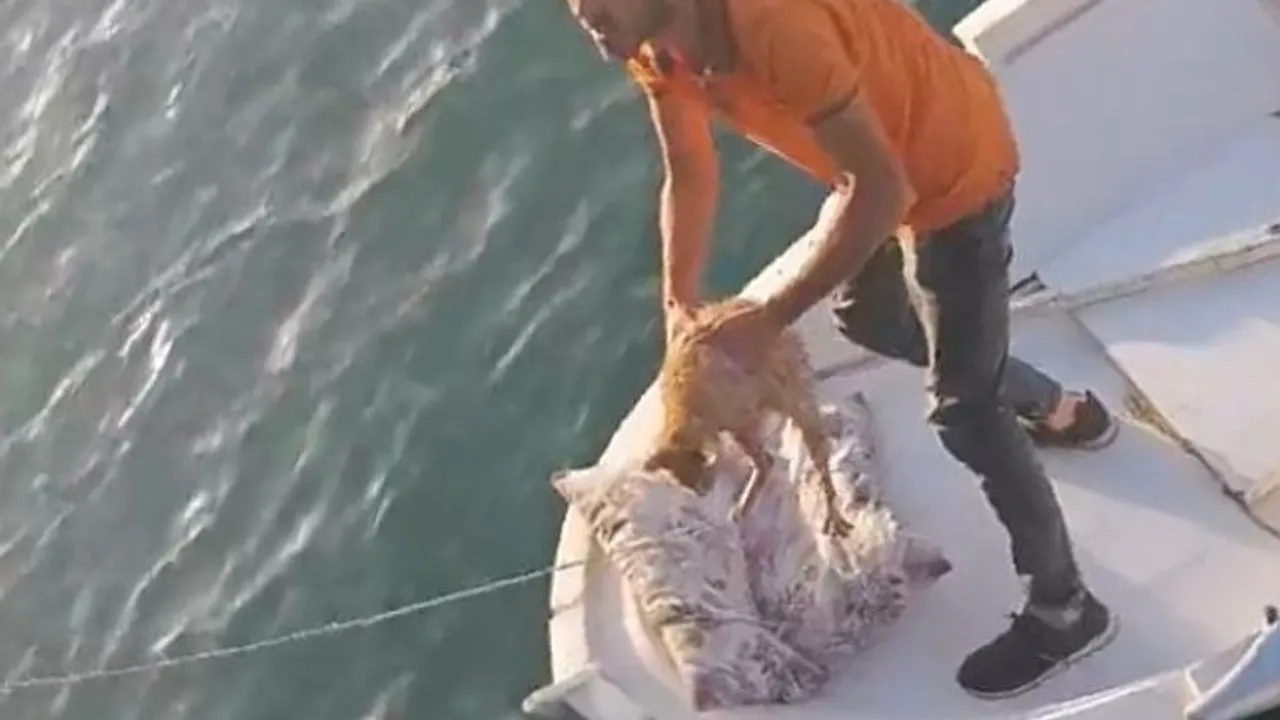 Gelen kayığın iskeleye yaklaşmasıyla birlikte kedi, mahsur kaldığı yerden canlı olarak kurtarıldı.
