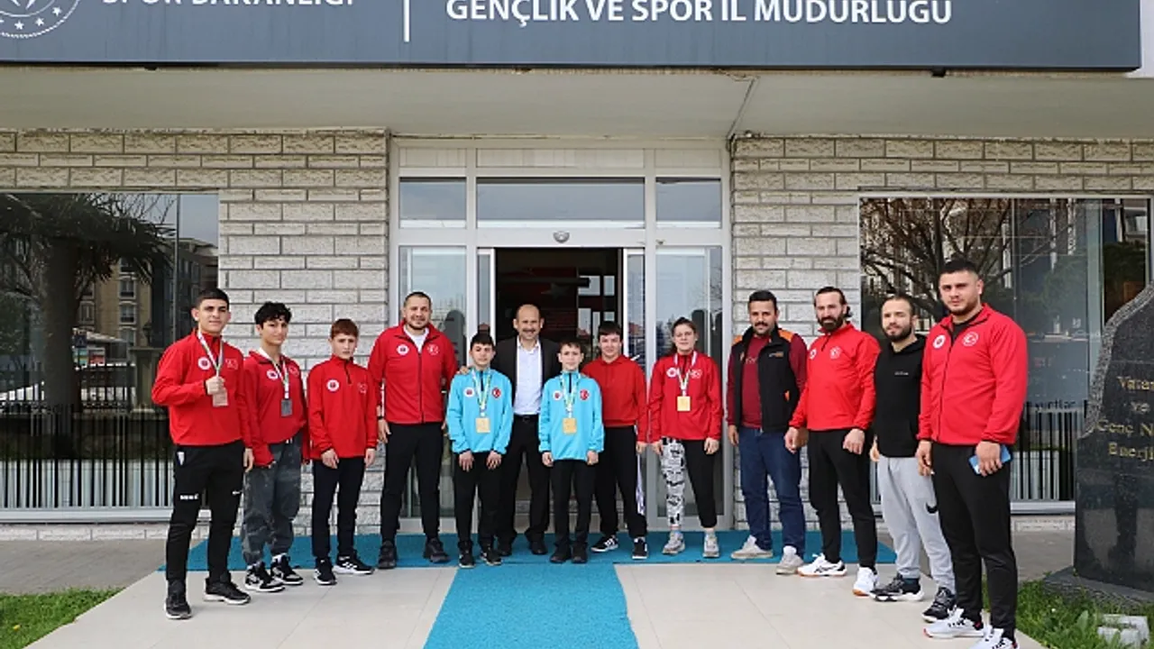 Başarılı sporcular ve antrenörleri Türkiye Milli Takım Teknik Direktörü Özgür Arlı ile birlikte, Samsun Gençlik ve Spor İl Müdürü Feyzullah Dereci’yi makamında ziyaret ettiler. İl Müdürü Feyzullah Dereci, Samsun ekibini elde ettikleri başarılardan dolayı tebrik ederek her zaman desteklerinin devam edeceğini söyledi. Okan ARALAN