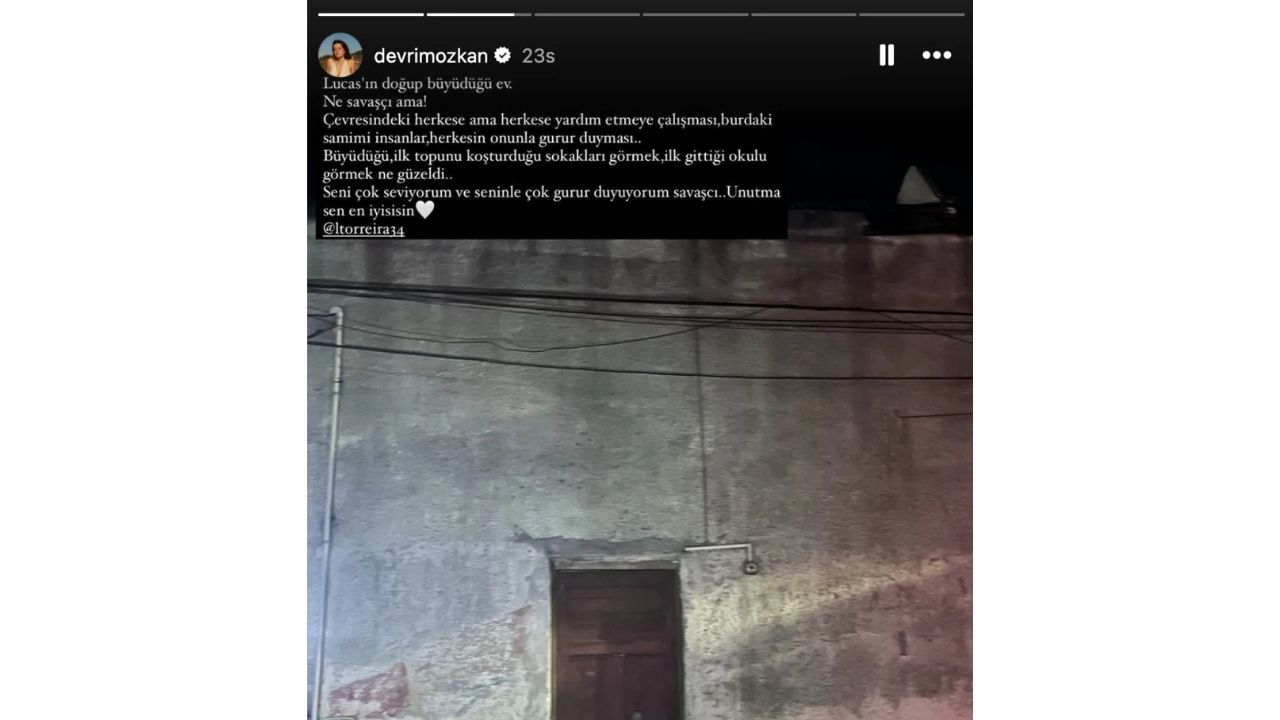 Ünlü oyuncu, sevgilisinin doğduğu evi paylaşarak, Torreira'ya övgü dolu dizeler sıraladı. Özkan; "Lucas'ın doğup büyüdüğü ev. Ne savaşçı ama! Çevresindeki herkese ama herkese yardım etmeye çalışması, buradaki samimi insanlar, herkesin onunla gurur duyması...
