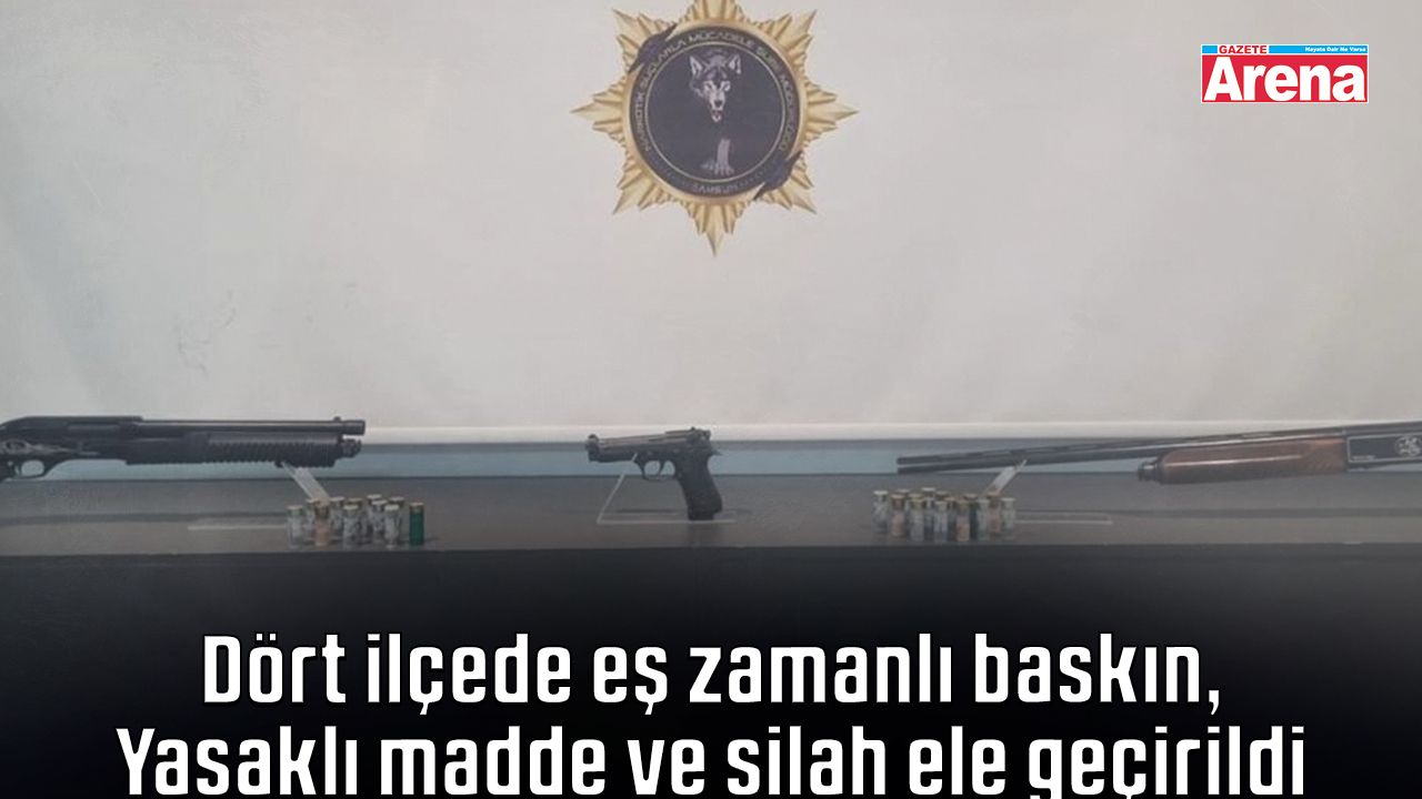 Operasyonlarda yapılan aramalarda 732 uyuşturucu hap, 155 gram uyuşturucu madde, 2 ruhsatsız tabanca, 2 ruhsatsız tüfek, 10 tabanca fişeği, 26 kartuş ve 2 hassas terazi ele geçirildi.