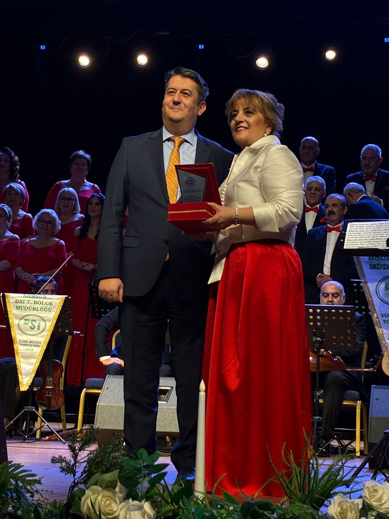 İkinci bölümde CHP Milletvekili Dr. Murat Çan, DSİ 7. Bölge Müdür Yardımcısı Ahmet Serdar Güzel’e, Ahmet Serdar Güzel ise DSİ Türk Müziği Topluluğu Şefi Hatice Sevtap Bayraktar’a plaket takdim etti. Özel Eğitim Okulu öğrencisi de topluluğa çiçek sundu.