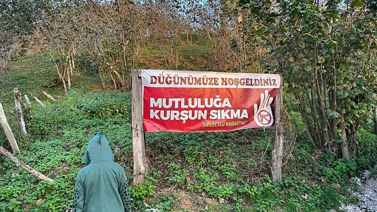 Ordu'nun Fatsa ilçesinde düzenlenen düğünde maganda kurşununa karşı 'Mutluluğa kurşun sıkma, geleceğini karartma' yazılı afiş asıldı.