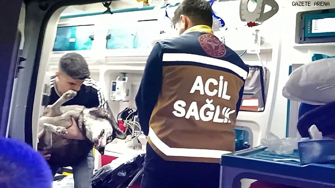 Bölgede bekleyen ambulansa alınan köpeğe 112 acil sağlık ekiplerince maske takılarak oksijen verildi.