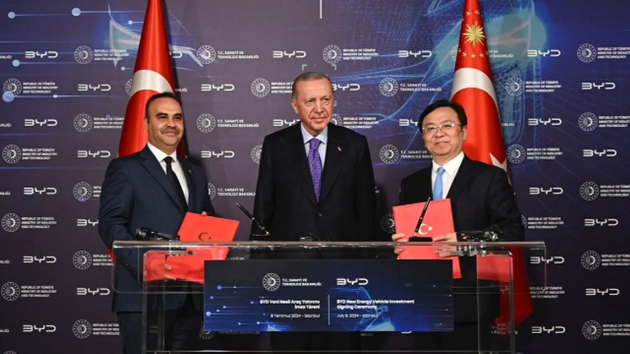 Çinli otomotiv deviyle imzalar Cumhurbaşkanlığı Dolmabahçe Çalışma Ofisi’nde, Cumhurbaşkanı Recep Tayyip Erdoğan’ın himayesinde, Sanayi ve Teknoloji Bakanı Mehmet Fatih Kacır ve BYD Yönetim Kurulu Başkanı Wang Chuanfu tarafından atıldı. Yapılan anlaşma çerçevesinde, BYD’nin Türkiye’de yaklaşık 1 milyar dolar yatırımla, yıllık 150 bin araç kapasiteli elektrikli ve şarj edilebilir hibrit otomobil üretim tesisi ile sürdürülebilir mobilite teknolojilerine yönelik Ar-Ge merkezi kurması öngörülüyor. 2026 sonunda üretime başlaması hedeflenen tesiste 5 bin kişiye kadar doğrudan istihdam sağlanması planlanıyor.