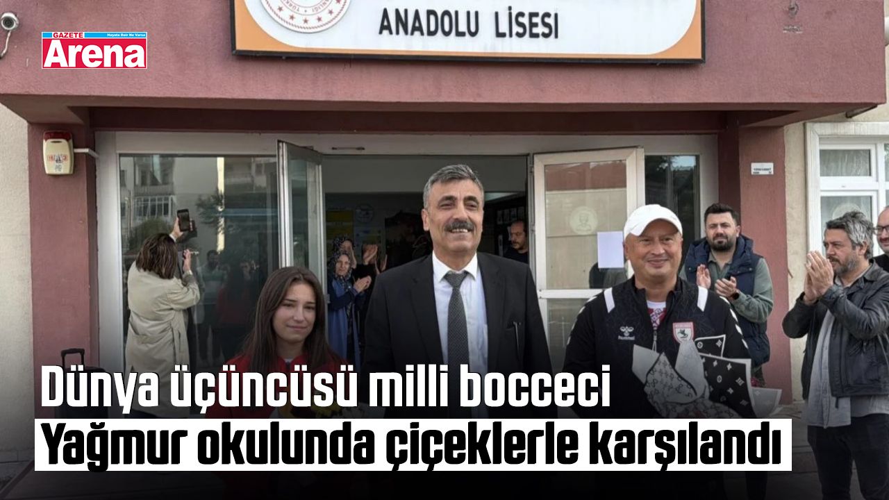 Fransa’nın Douai kentinde düzenlenen Bocce Petank Dünya Kupası’nda büyük kadınlar kategorisinde üçüncü olarak Türkiye’ye bronz madalya kazandıran milli sporcu Yağmur Tosun, Samsun’un Alaçam ilçesinde öğrenim gördüğü okulda coşkuyla karşılandı. Henüz 15 yaşındaki başarılı sporcu, okul arkadaşları ve öğretmenlerinin alkışları arasında büyük bir sevgi seliyle karşılaştı.