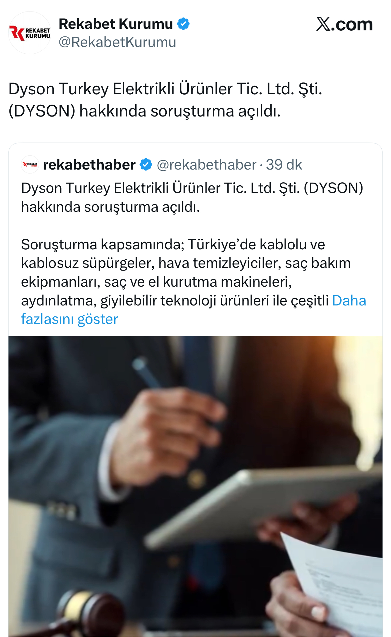 Rekabet Kurumu, bu yapının rekabeti kısıtlayıcı bir etki oluşturup oluşturmadığını inceliyor. Kurum, başlatılan soruşturmanın Dyson’ın kanunu ihlal ettiği anlamına gelmediğini, inceleme tamamlandıktan sonra nihai sonucun açıklanacağını duyurdu.