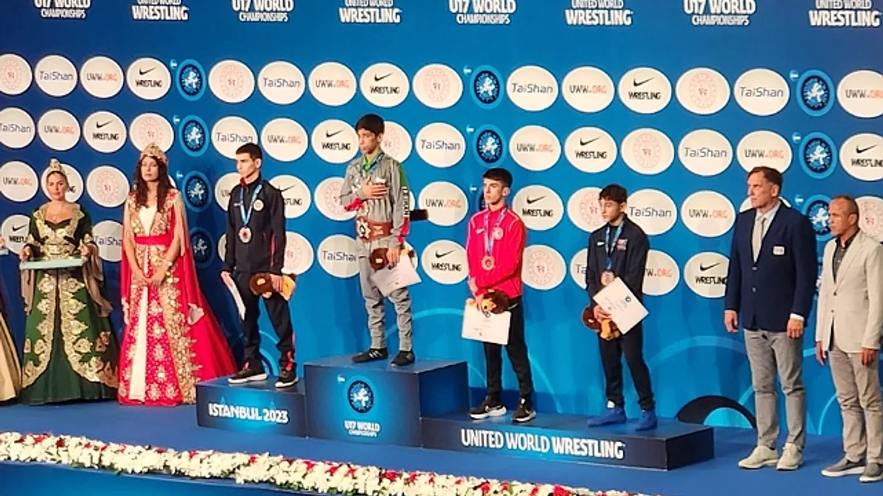 İstanbul Başakşehir Spor Kompleksi’nde 31 Temmuz-6 Ağustos 2023 tarihleri arasında düzenlenen U17 Dünya Güreş Şampiyonası’nın son günü final müsabakaları ile devam ediyor. Bugün 45 kiloda mindere çıkan Ebubekir Gür, bronz madalya mücadelesinde Kazak rakibi Nurmukhamed Turdaly ile karşılaştı. Milli güreşçi, rakibini tuşla mağlup ederek bronz madalyanın sahibi oldu.