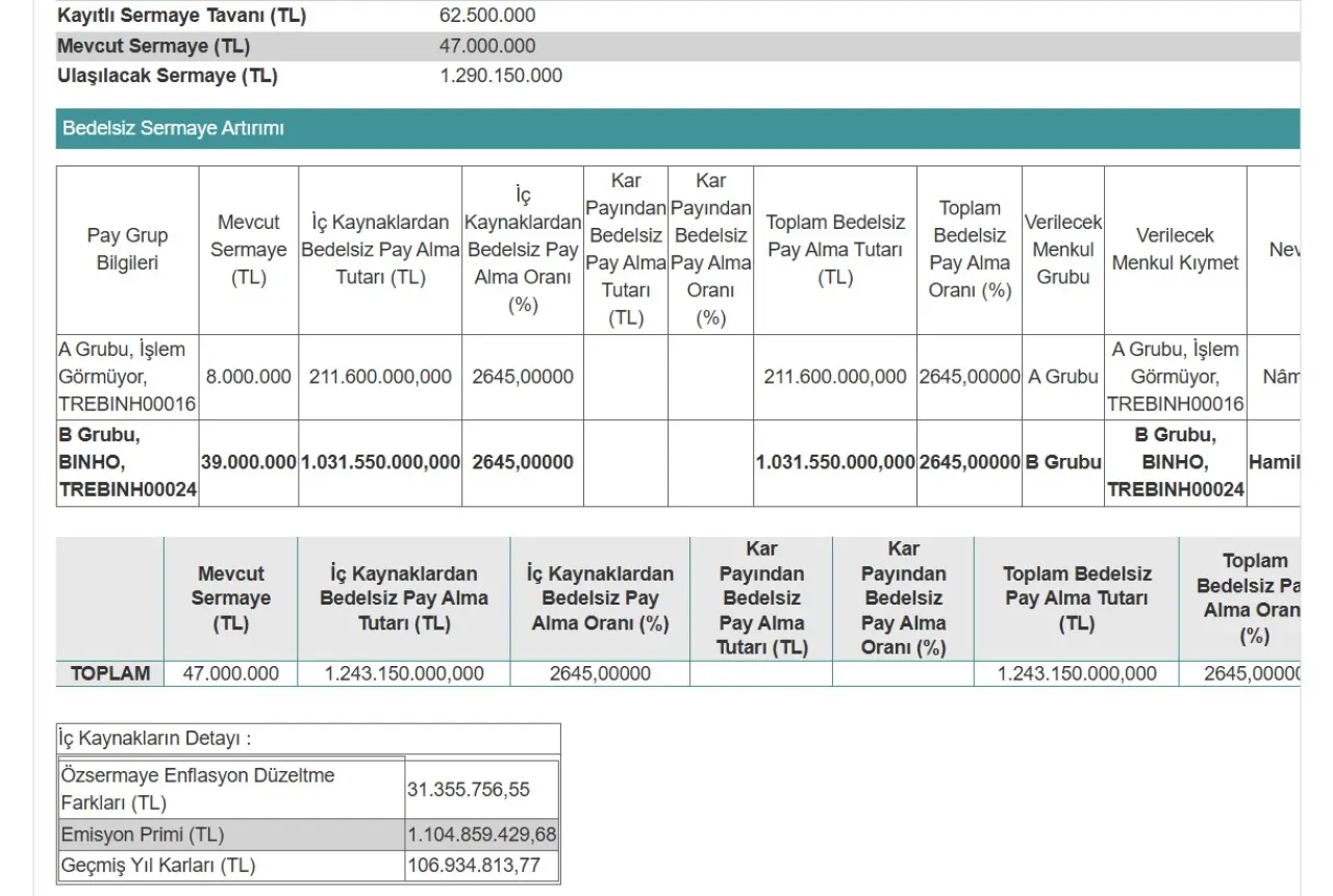 1000 Yatırımlar Holding A.Ş. Yüzde 2645 Sermaye Artıracak, BINHO Hisse Bölünecek!