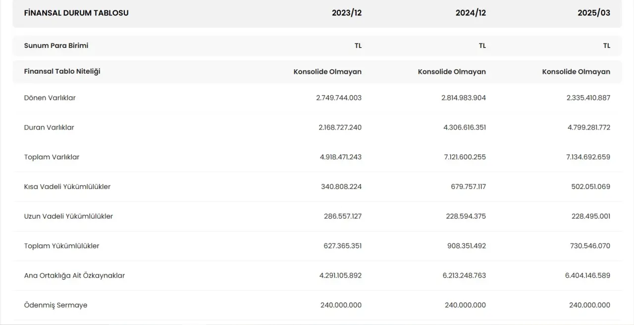 Şirketin özkaynaklarında ise yüzde 3 gerileme yaşandı ve 6,58 milyar liradan 6,4 milyar TL seviyesine düştü.