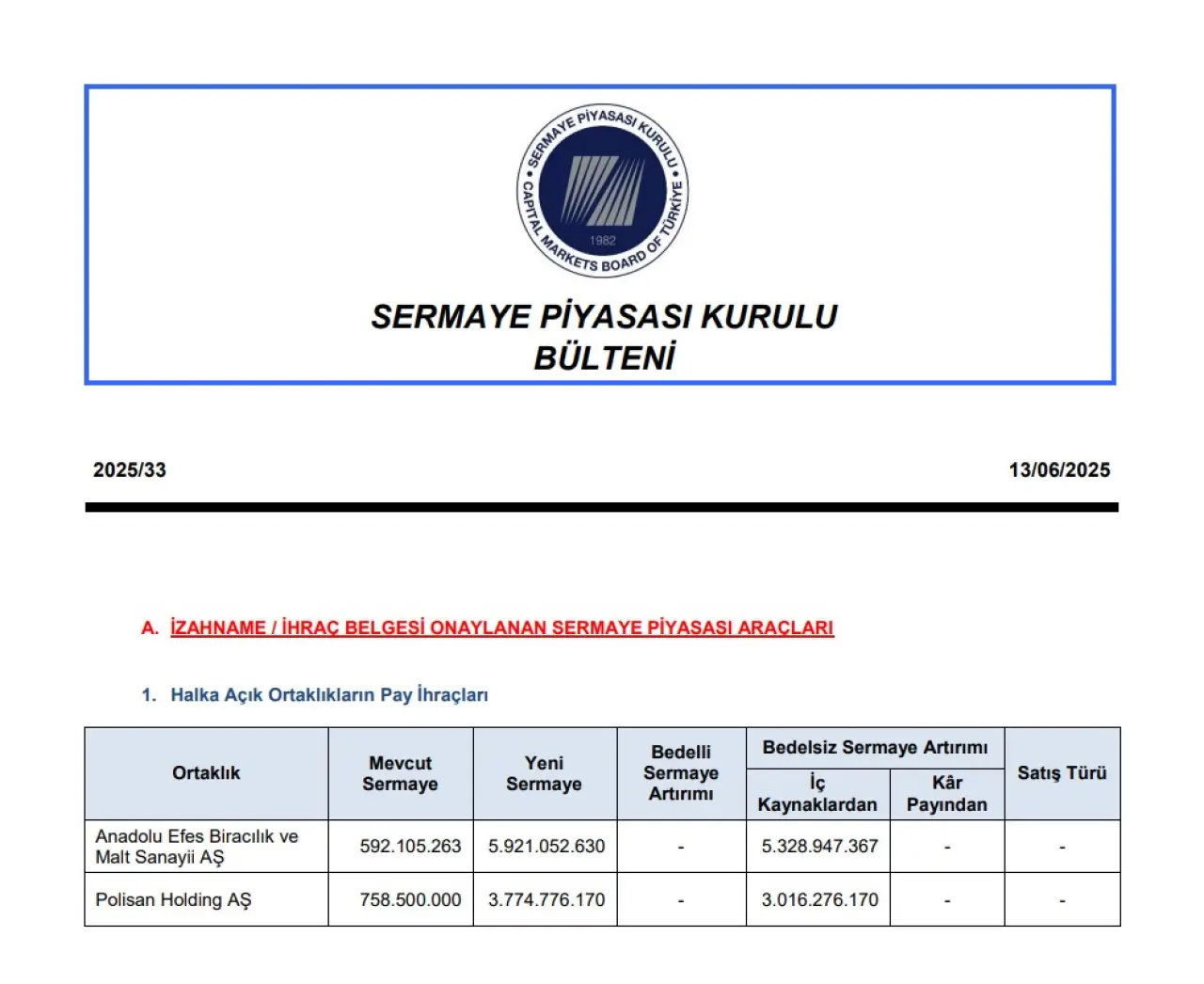 Geride bıraktığımı Mart ayının sonunda bedelsiz sermaye artırımı kararını alan Polisan Holding, aradan geçen yaklaşık 2,5 ayın akabinde Sermaye Piyasası Kurulu’ndan müjdeli haberi aldı: