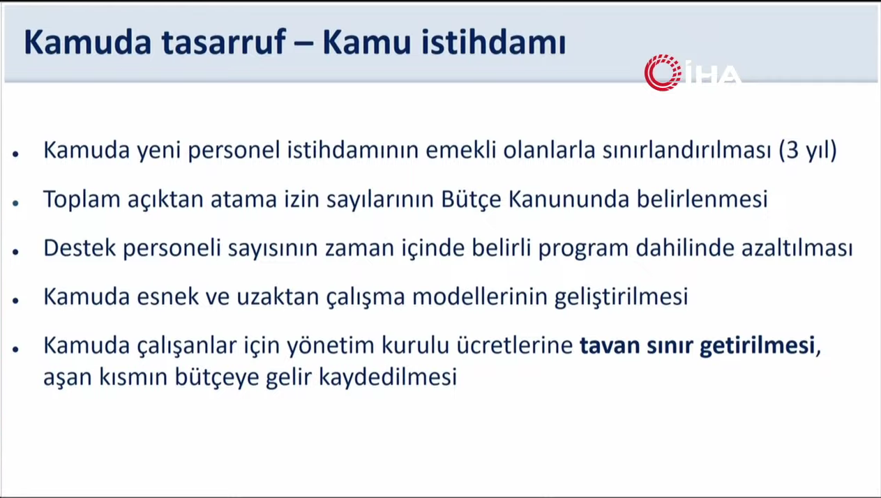 - Kamuda yeni personel istihdamının emekli olanlarla sınırlandırılması (3 yıl)