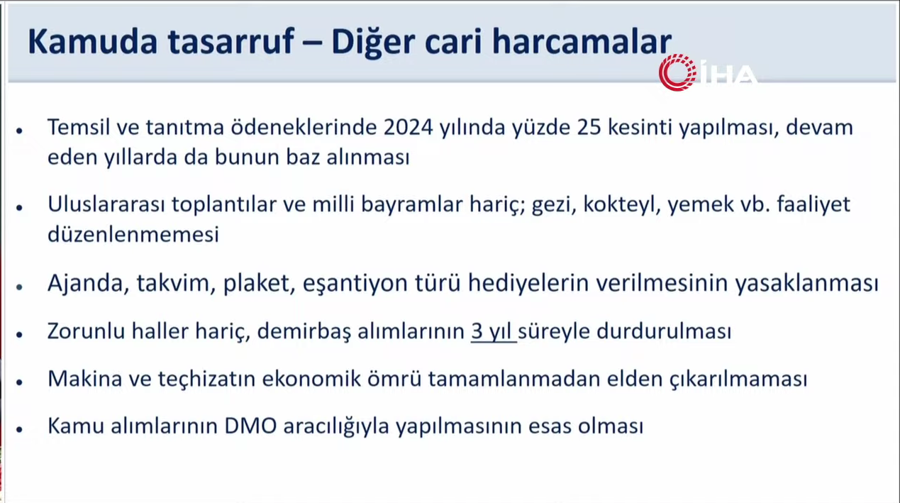 - Temsil ve tanıtma ödeneklerinde 2024 yılında yüzde 25 kesinti yapılması, devam eden yıllarda bunun baz alınması