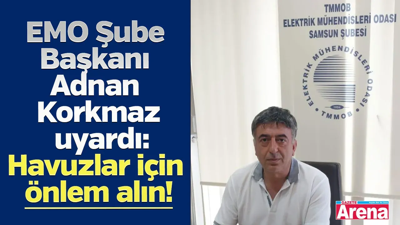 Elektrik Mühendisleri Odası (EMO) Samsun Şube Yönetim Kurulu Başkanı Adnan Korkmaz, deniz sezonunun açılmasıyla birlikte ev ve sitelerde bulunan havuzlara dikkat çeken bir açıklamada bulundu. Korkmaz, yaptığı yazılı açıklamada, şu ifadelere yer verdi: "Yaz aylarında, özellikle park ve bahçelerdeki süs havuzlarında, binaların havuzlarında veya yüzme havuzu bulunan tesislerde elektrik kaynaklı kazaların sayısı artış göstermektedir. Bu kazalar, çoğunlukla gerekli önlemlerin alınmaması ve elektrik tesisatlarının yeterince denetlenmemesi nedeniyle yaşanmakta, maalesef ölümlerle sonuçlanmaktadır. Son olarak, 6 Haziran 2025 Cuma günü evinin havuzunda meydana gelen motor arızasına bağlı olarak elektrik çarpması sonucu, geçmiş dönem Manisa Mimarlar Odası Temsilcimiz ve Manisa Büyükşehir Belediye Başkanı Ferdi Zeyrek’i kaybetmenin derin üzüntüsünü yaşıyoruz. TMMOB camiasına ve Manisa halkına başsağlığı diliyoruz. Benzer şekilde, 20 Nisan 2025 tarihinde Kırklareli’nde bir çay bahçesindeki süs havuzuna düşen 5 yaşındaki çocuk ve onu kurtarmaya çalışan 3 kişi elektrik akımına kapılarak yaralanmıştır.
