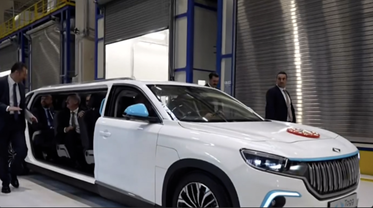 Erdoğan’ın tören alanına girişinde çekilen görüntülerde, Togg’un uzatılmış gövdeye sahip özel versiyonu dikkat çekti. Araçta Cumhurbaşkanı Erdoğan’ın yanı sıra bazı bakanlar ve oğlu Bilal Erdoğan da yer aldı.