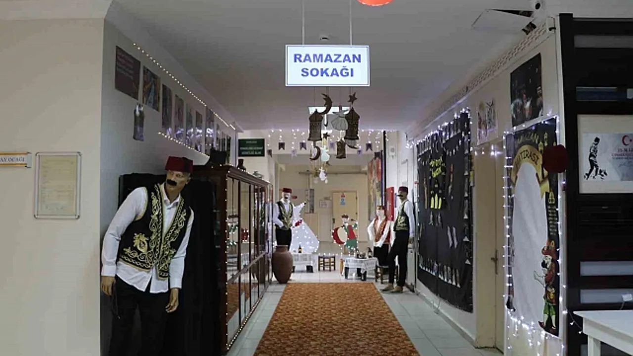 Rize'de lise öğrencileri tarafından okul koridorunda yapılan 'Ramazan Sokağı' ile eski Ramazan gelenekleri yaşatılıyor.