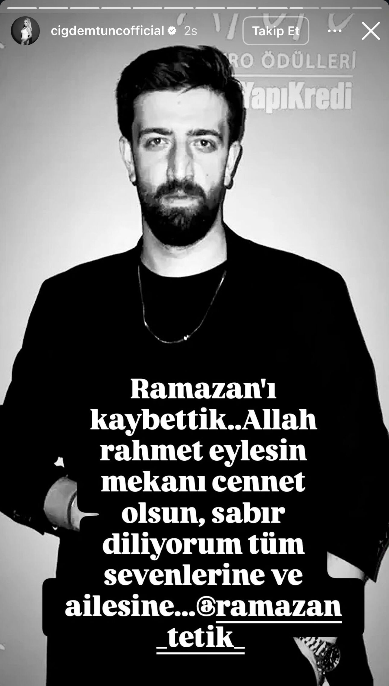 Tunç paylaşımında, “Ramazan’ı kaybettik… Tanıdığım en efendi, en sevgi dolu, en yetenekli genç oyunculardan birisiydi… Provalarını aksatmaz, geçimi için kuryelik yapardı… Hepimizin çok sevdiği bir genç insan ebediyete intikal etti biraz önce. Başımız sağolsun, Allah rahmet eylesin. Sabır diliyorum tüm ailesine ve sevenlerine… Çok üzgünüz…” ifadelerine yer verdi. Genç yaşta hayatını kaybeden Ramazan Tetik’in vefatı, sanat camiasında ve sevenleri arasında büyük üzüntü yarattı.