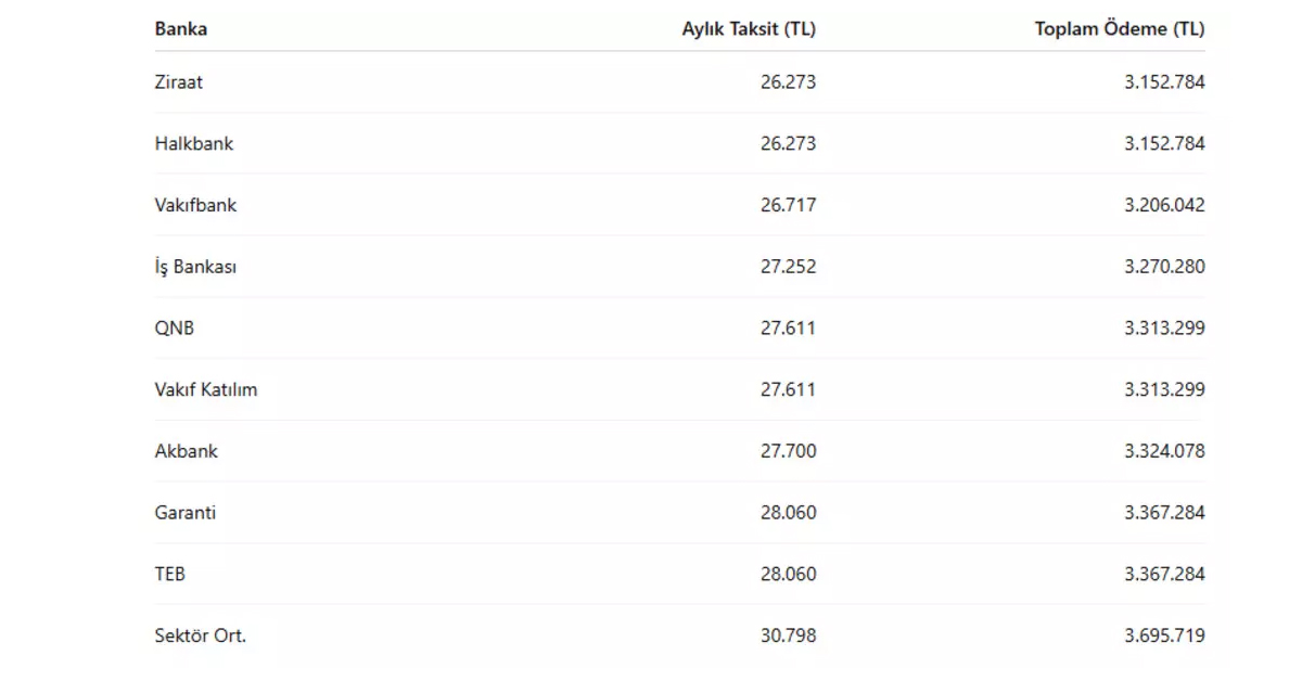 İşte bankaların 1 milyon TL'lik konut kredisinin geri ödemesi: