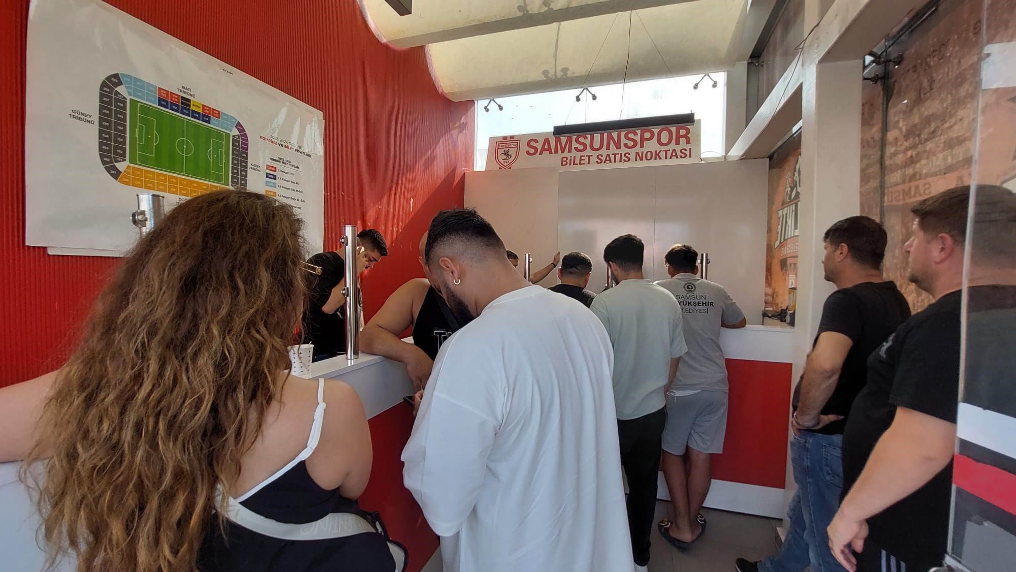 Gurbetçi Murat Erden ise, “Takımımızı Süper Lig’de izlemek için bilet almaya geldik. Passoligimiz de yok. Biletler de tükenmek üzere. İnşallah bilet bulabiliriz. Canı gönülden Samsunspor’u destekliyoruz. Fenerbahçe maçında tribünde olmayı istiyoruz” ifadelerini kullandı.
