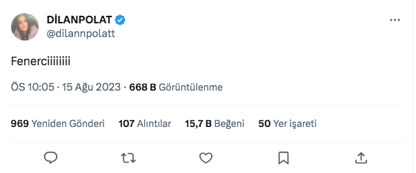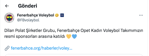 Son zamanlarda lüks yaşantısı, kafasına taktığı paralar, eşinin kendisine iş makinesiyle dolu güllerle yaptığı süprizlerle adı magazin manşetlerinden düşmeyen iş insanı ve fenomen Dilan Polat, Fenerbahçe'ye  sponspor olduğunu açıkladı.