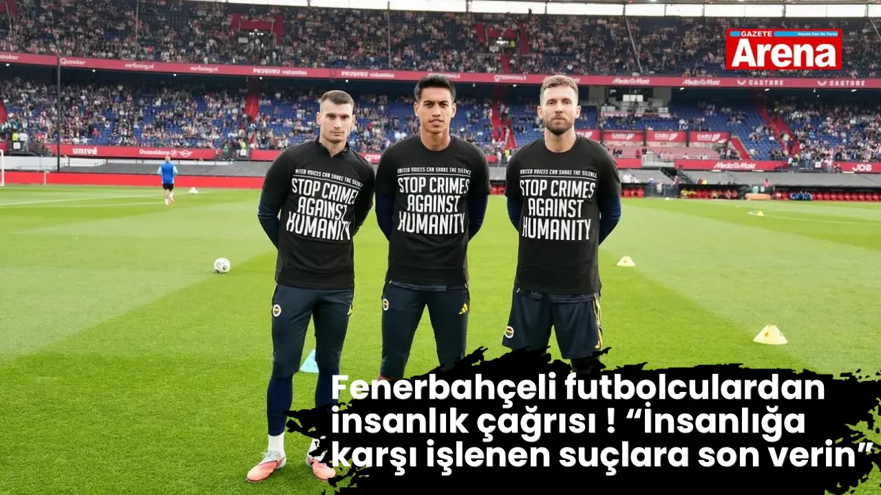 Fenerbahçe futbol takımı, Hollanda temsilcisi Feyenoord ile oynayacağı hazırlık maçı öncesinde anlamlı bir mesaj verdi. Sarı-lacivertli futbolcular, ısınmaya “Stop Crimes Against Humanity” (İnsanlığa karşı işlenen suçlara son verin) yazılı siyah tişörtlerle çıktı.