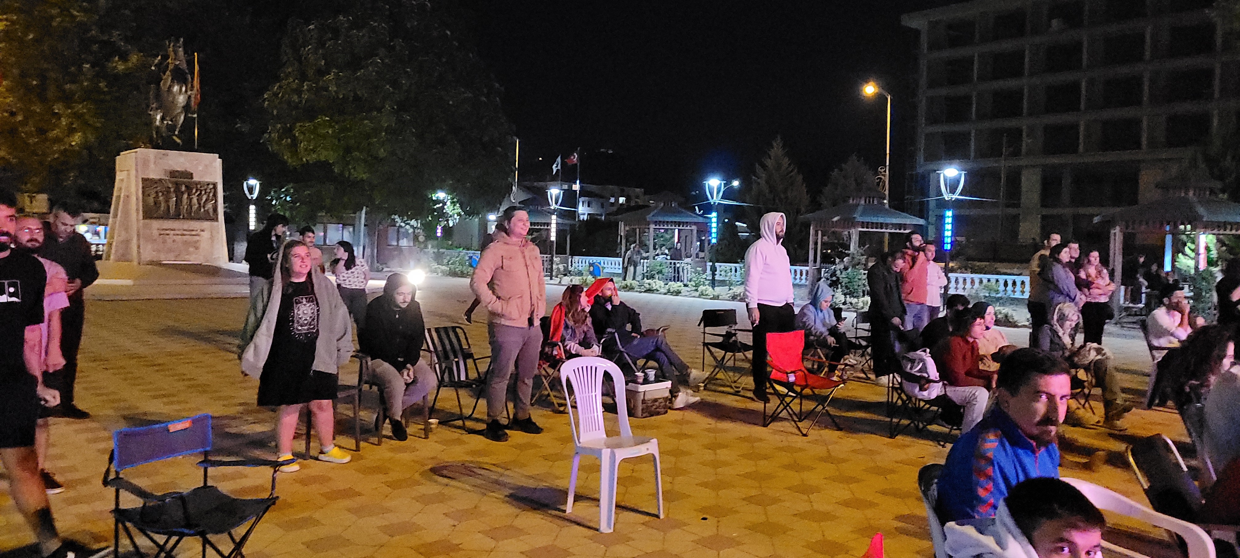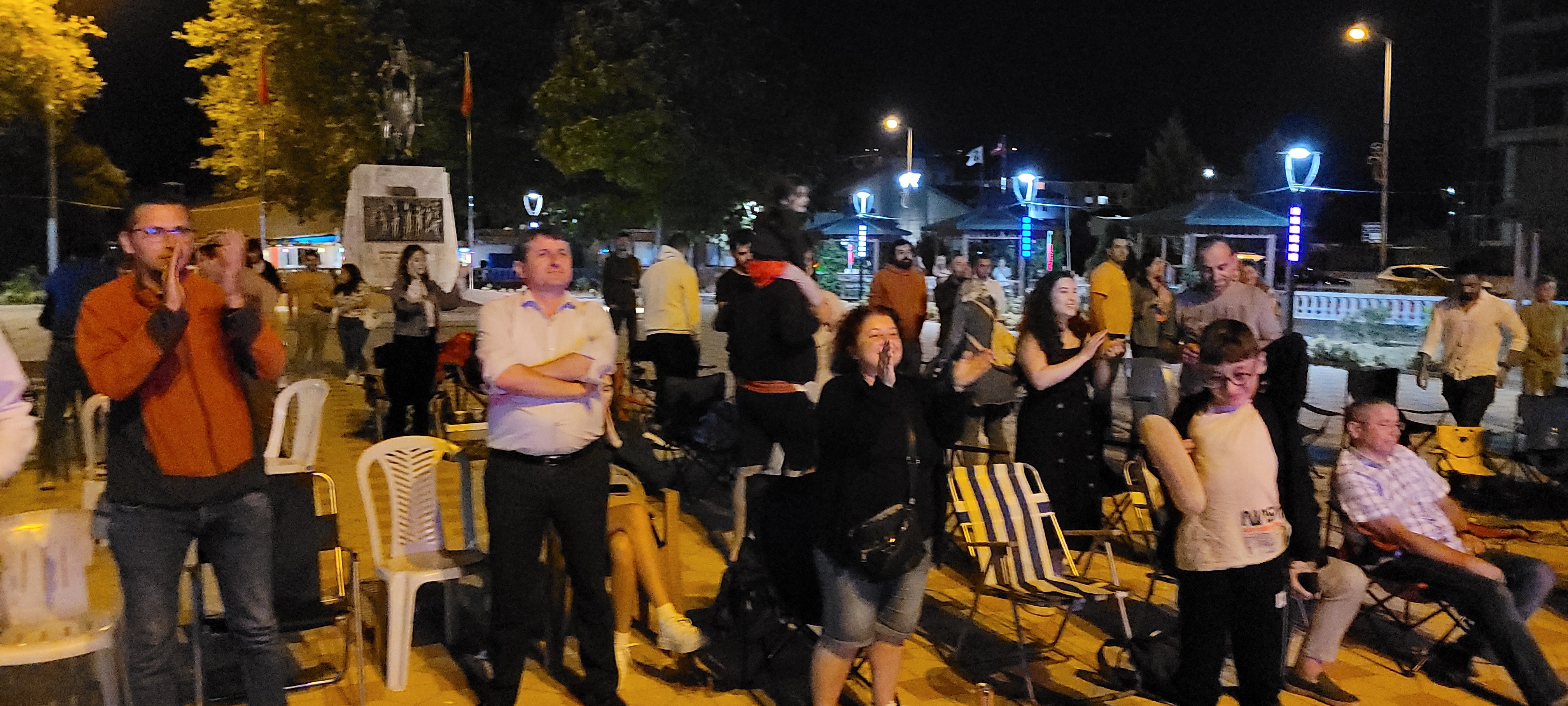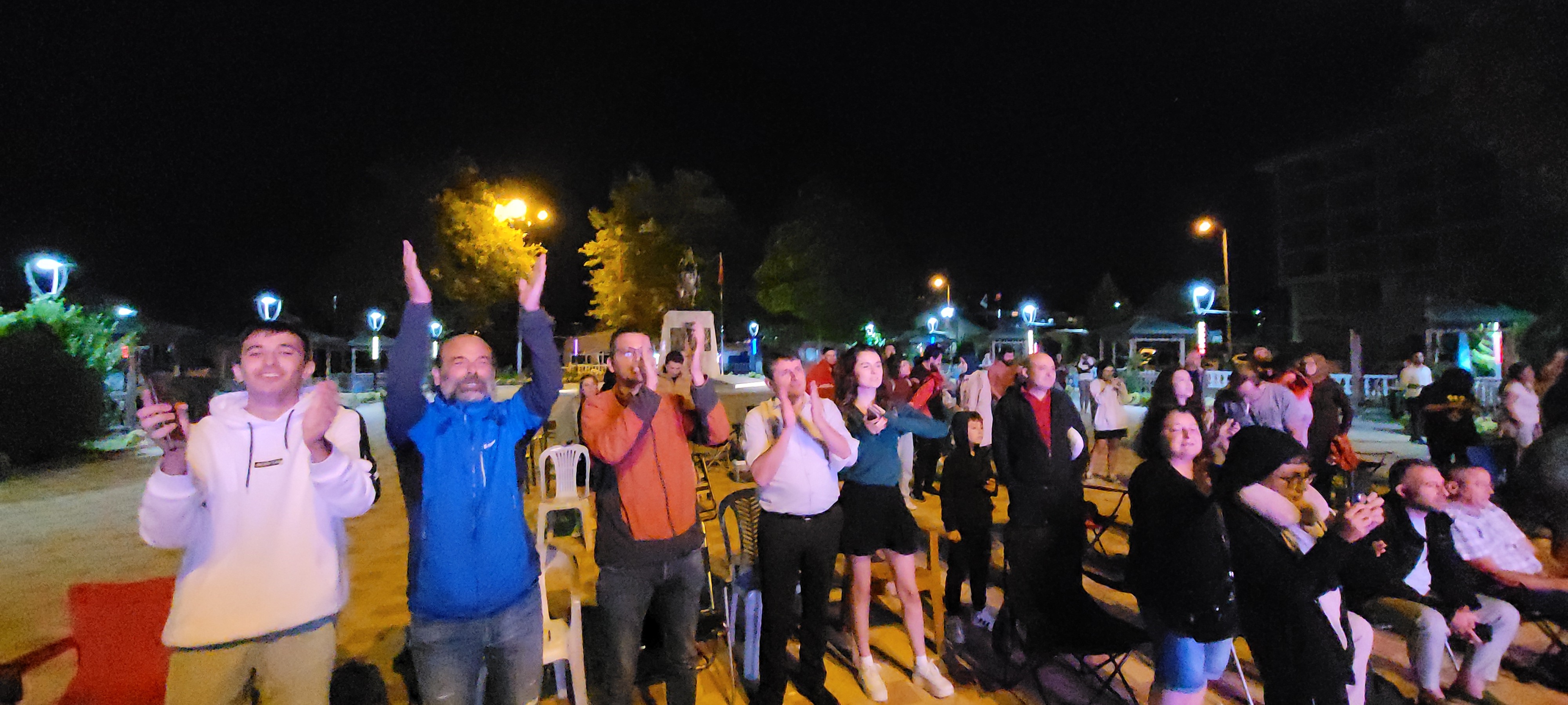 Karşılaşmanın bitiş düdüğüyle birlikte meydanda dev ekranda maçı içleyen vatandaşlar, "Erik Dalı" oynayarak kutlama yaptı.