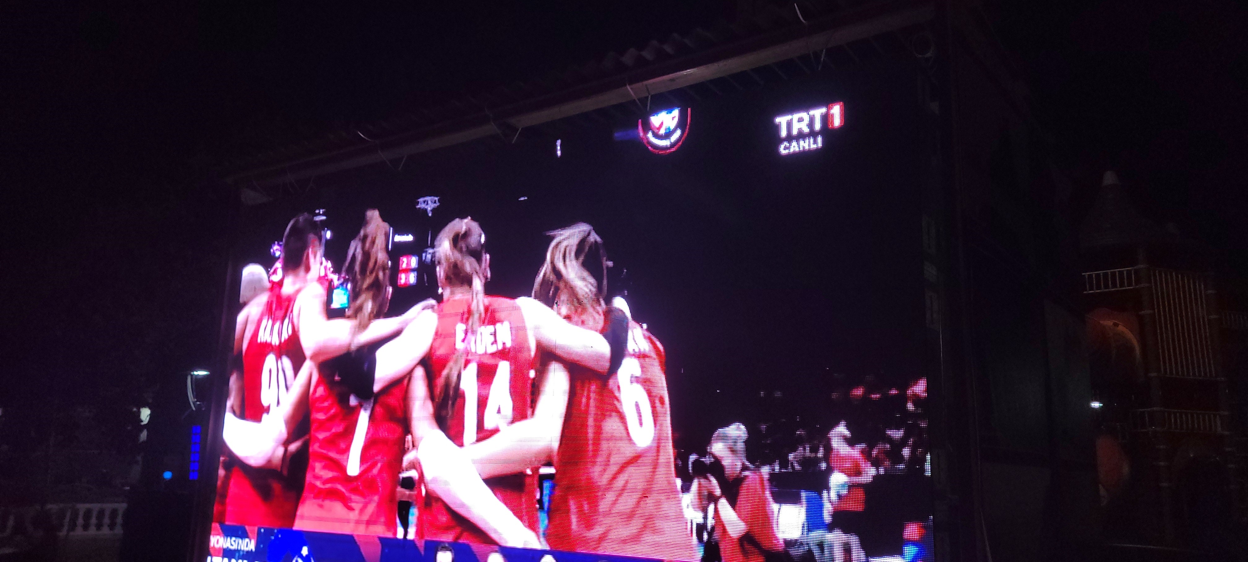 Cide Belediyesi tarafından A Milli Kadın Voleybol Takımı'nın Avrupa Şampiyonası final maçı için Atatürk Özgürlük ve Gençlik Parkına dev ekran kuruldu. Genç yaşlı yüzlerce vatandaş ellerinde Türk bayrakları ile final maçının heyecanını yaşamak için meydanı doldurdu.