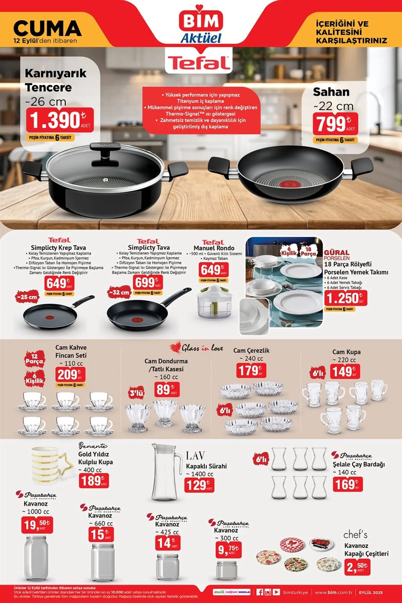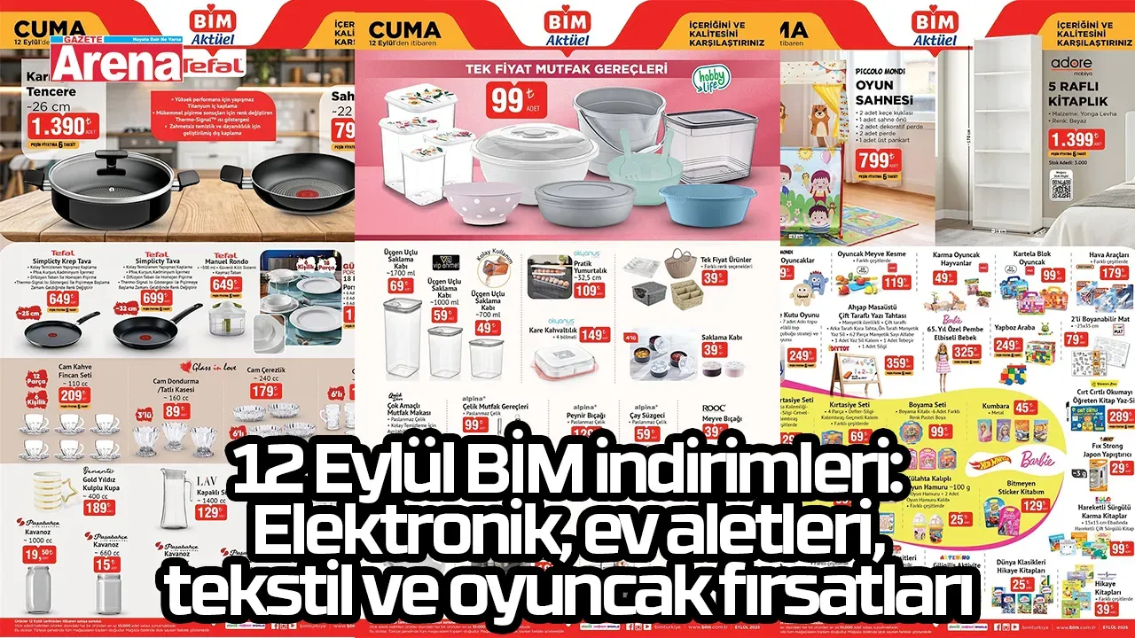 12 Eylül 2025 BİM aktüel kataloğu da yine geniş ürün yelpazesi ve cazip fiyatlarıyla dikkat çekiyor. Bu hafta öne çıkan ürünler arasında Fakir Türk Kahvesi Makinesi, TCL 65’’ 4K HDR Google TV, Tefal mutfak ürünleri ve ev ihtiyaçlarına yönelik birçok seçenek bulunuyor.