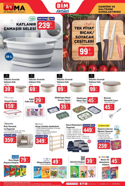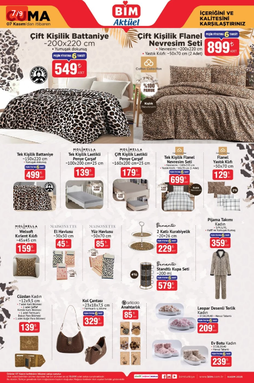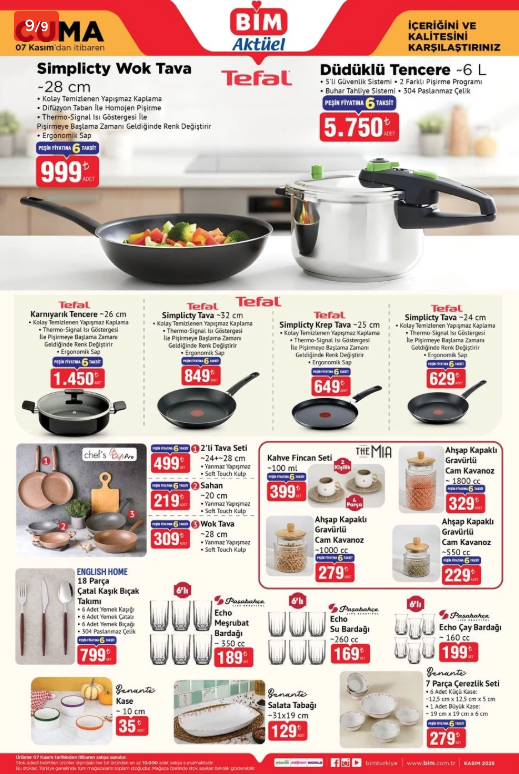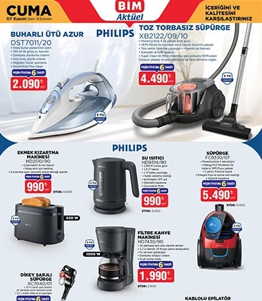 7 Kasım 2025 Cuma günü başlayacak indirimlerde ise mutfak ve ev aletleri ön plana çıkıyor. Kumtel Beyaz Cam Ankastre Set 9.750 TL, Kumtel Siyah Cam Ankastre Set 9.500 TL, Heifer Profesyonel Fön Saç Düzleştirici 4.990 TL, Arzum Nuvo İyon Saç Düzleştirici 1.190 TL, Tefal Easygliss Plus Buharlı El Ütüsü 2.190 TL, Onvo Mekanik Tost Makinesi 2.290 TL gibi ürünler BİM mağazalarında yer alacak.