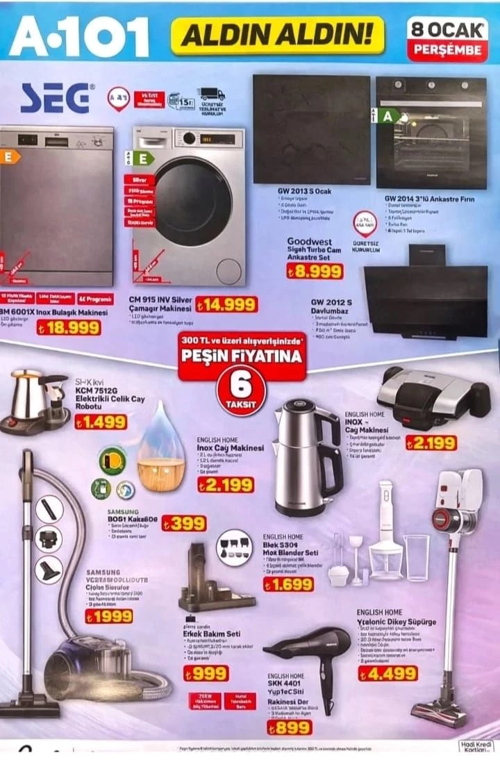 A101, Ocak ayı indirimlerine devam ediyor. 08 Ocak 2026 Perşembe günü itibarıyla onlarca fırsatlı ürün A101 raflarında yerini alacak. Bu haftanın öne çıkan ürünü ise SEG Inox Bulaşık Makinesi.